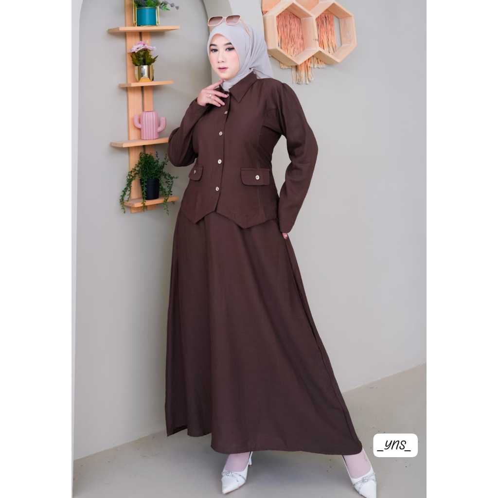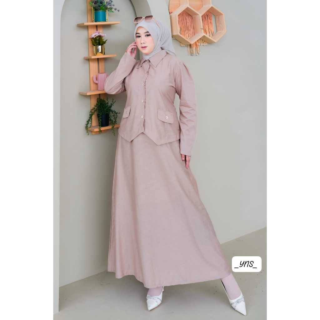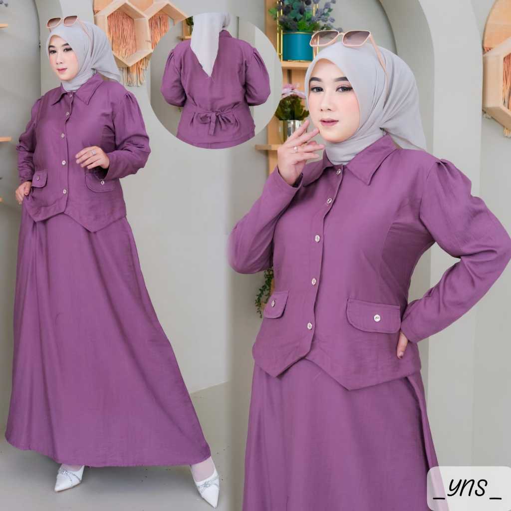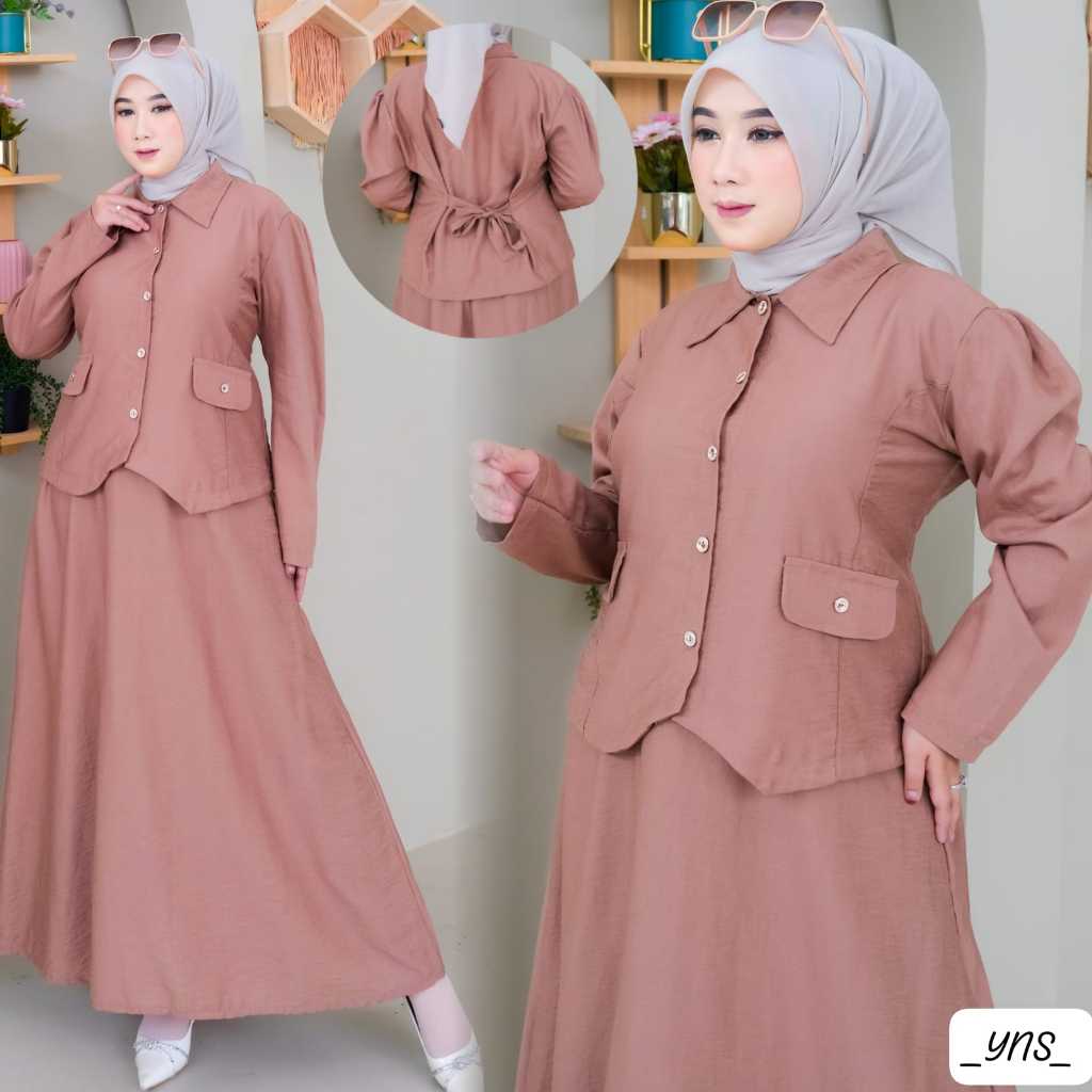 Gamis setelan rok lebaran/Setelan rok wanita muslim dewasa terbaru 2025 viral model sekarang/setelan dewasa wanita kekinian/korean style/gamis setelan model baru 2025/baju setelan ibu ibu /kondangan/gaun pesta simpel elegan/setelan gaun remaja dewasa/