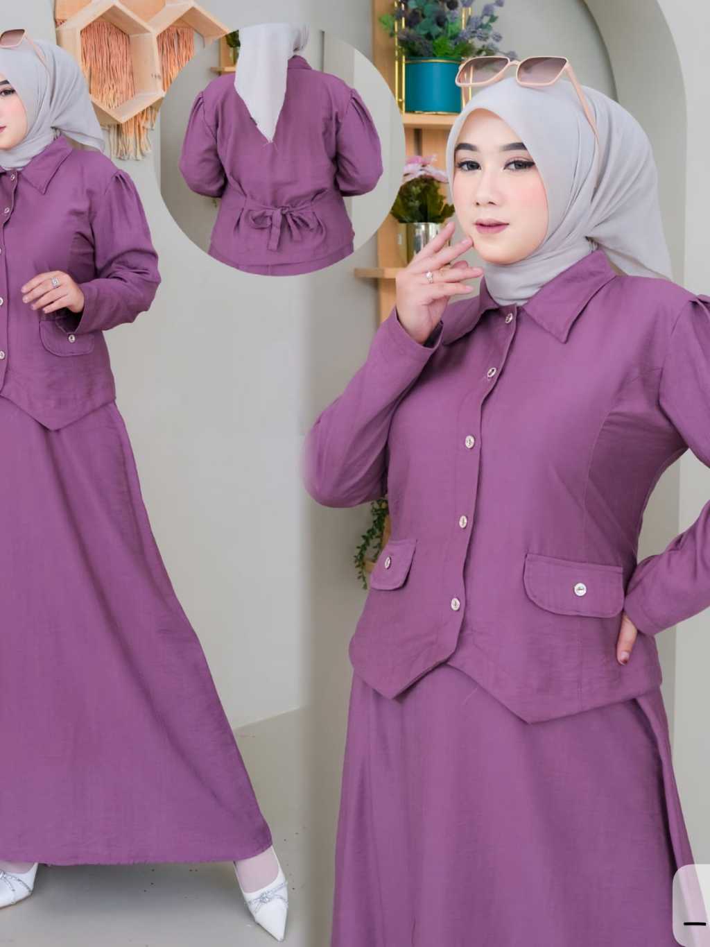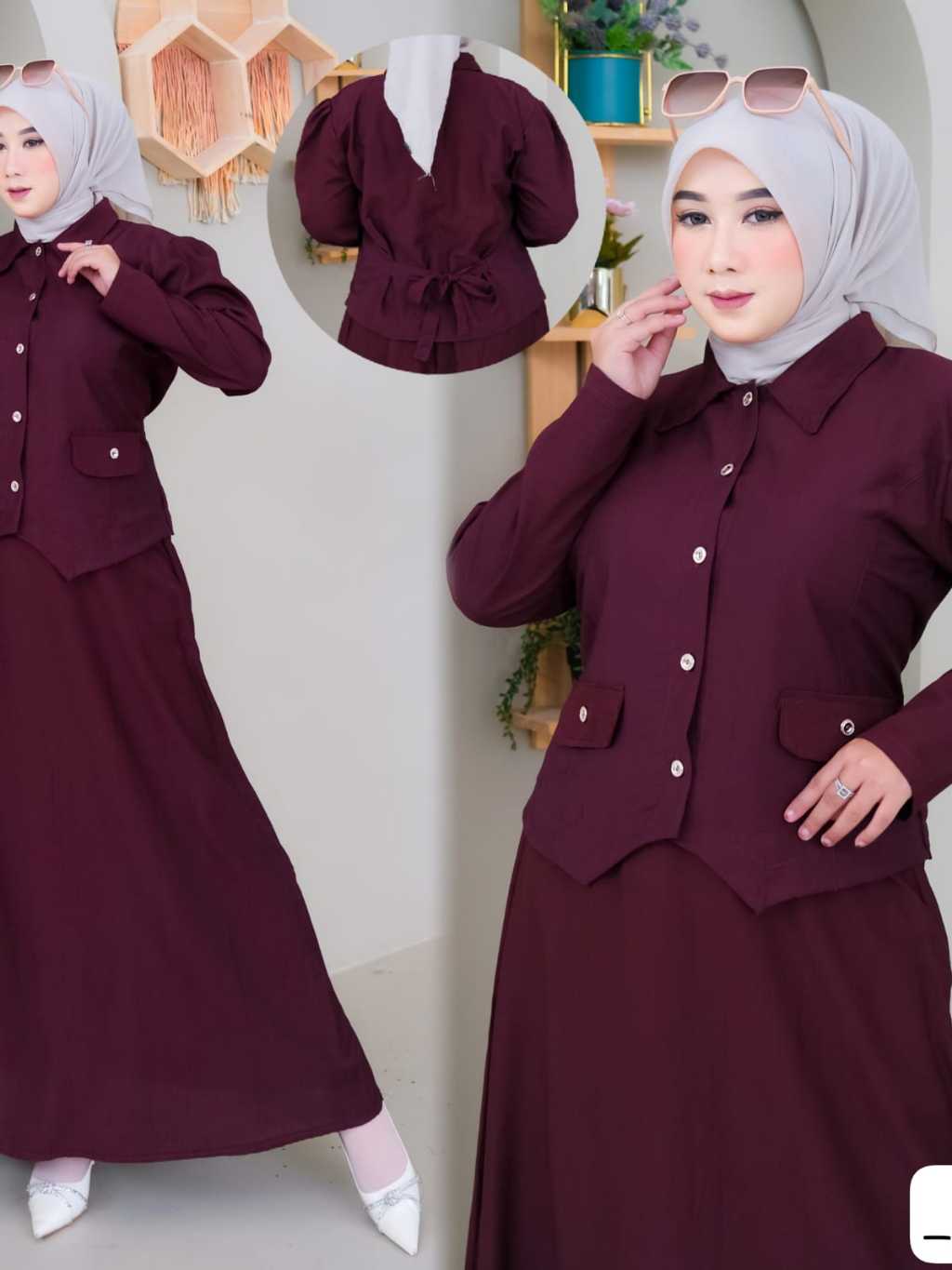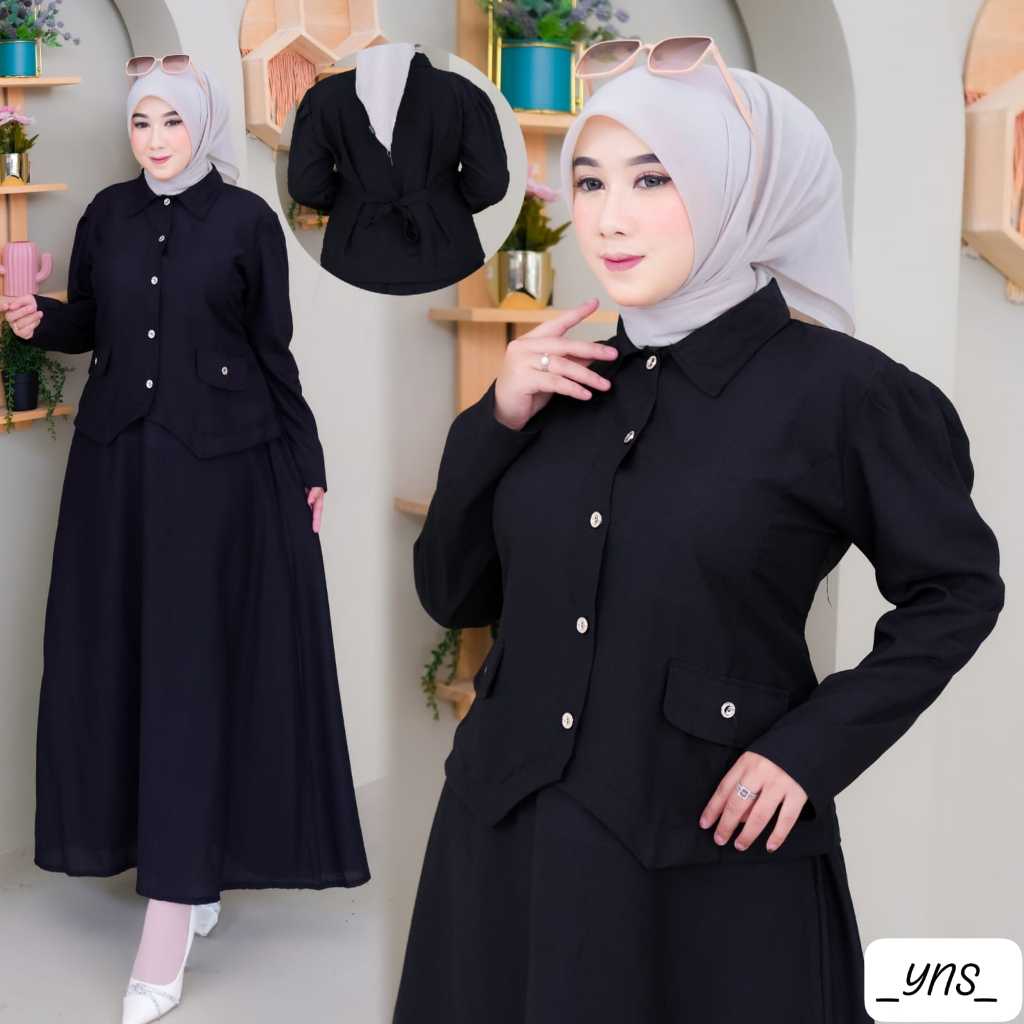 Gamis setelan rok lebaran/Setelan rok wanita muslim dewasa terbaru 2025 viral model sekarang/setelan dewasa wanita kekinian/korean style/gamis setelan model baru 2025/baju setelan ibu ibu /kondangan/gaun pesta simpel elegan/setelan gaun remaja dewasa/