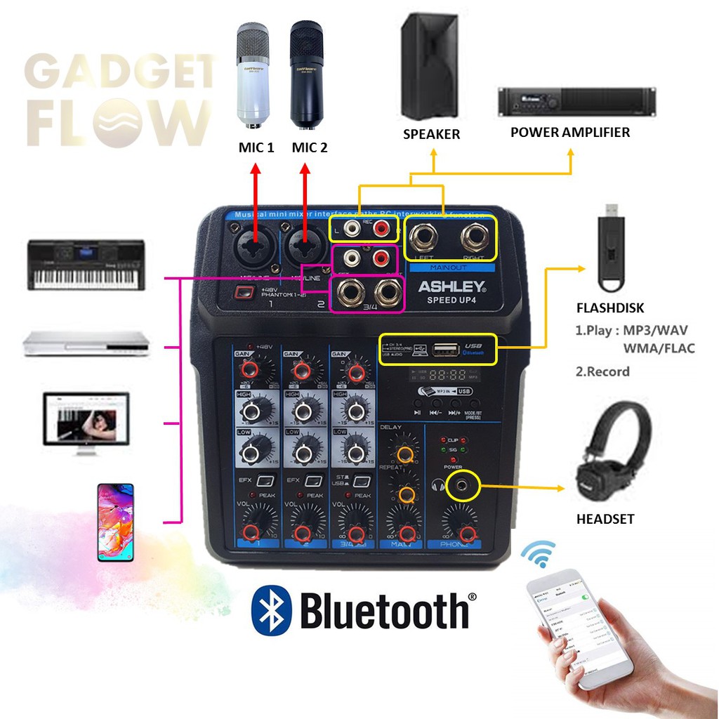 Mixer A4 Audio Interface Amplifier Soundcard Bluetooth Guitar Gitar SP TEYUN