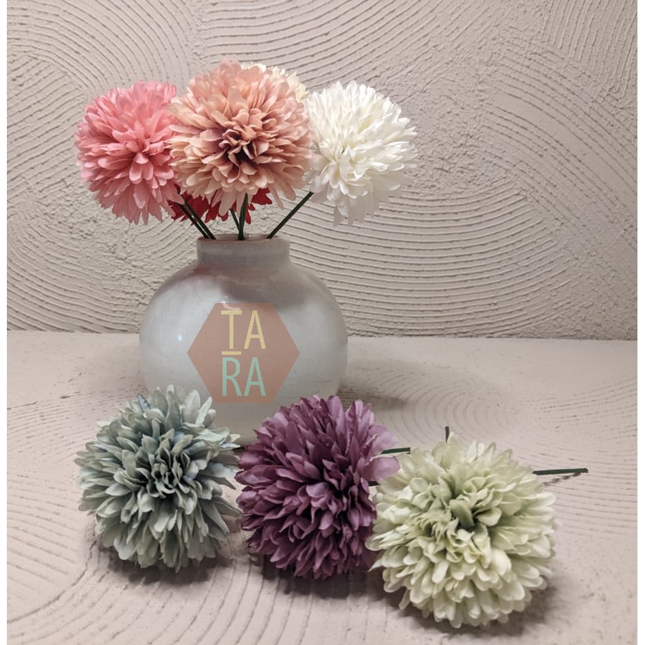 Bunga Pompom Artifisial 7cm dengan tangkai