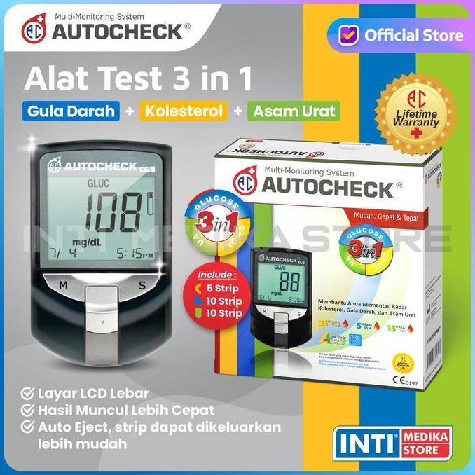 LAPAKJAJAN33 - AUTOCHECK - ALAT CEK 3IN1 GCU GULA DARAH KOLESTEROL ASAM URAT | BLOOD GLUCOSE CHOLESTEROL URIC ACID MULTI-FUNCTION MONITORING SYSTEM