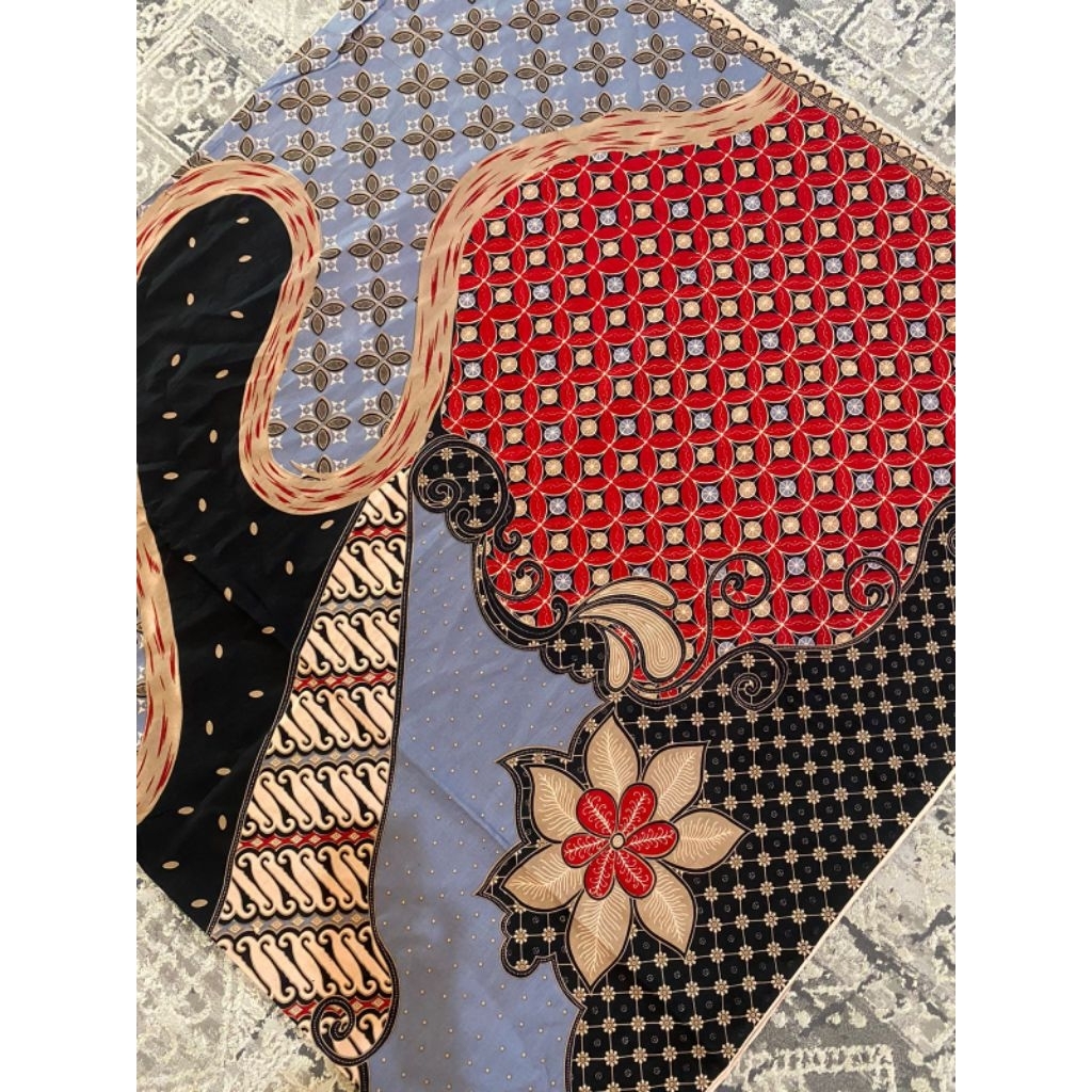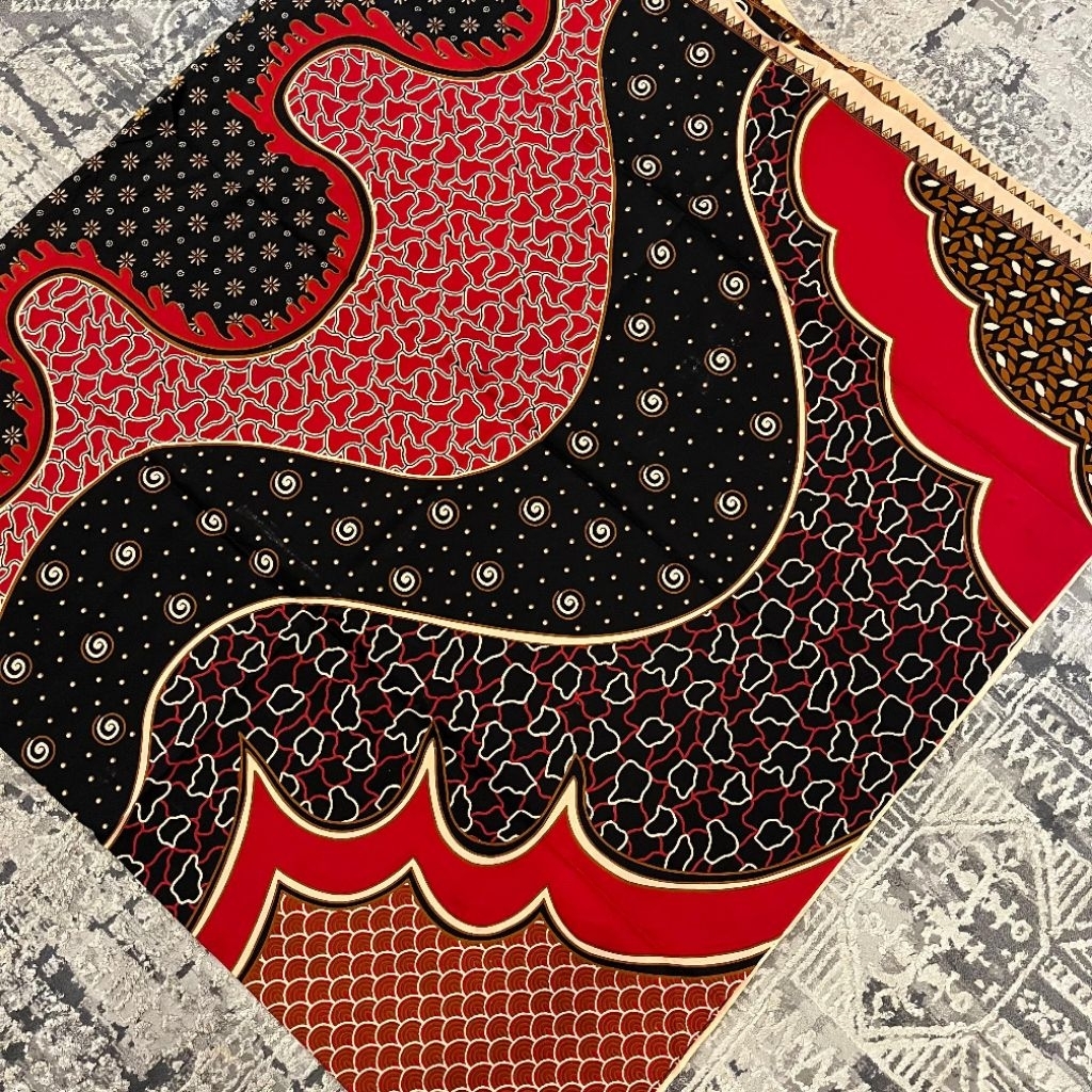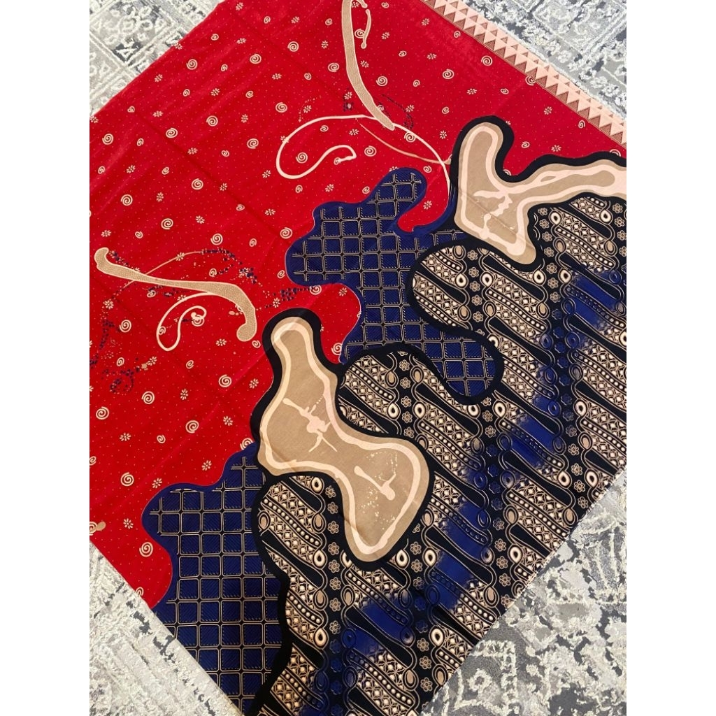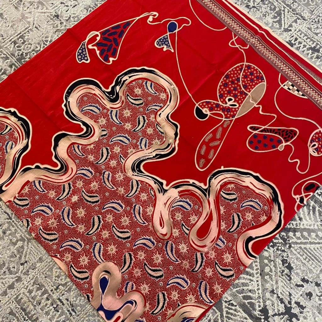 Kain Batik Malyka Solo Rok Wiru Selendang Kemeja Motif Abstrak Merah Bawahan Kebaya Bridesmaid Pengantin Lamaran Wisuda