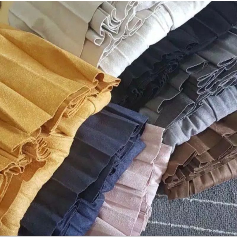 Rok prisket suede LONDON GIRL import panjang 80cm & 95cm | rok prisket suede hitam coksu brown | rok suede import | rok suede premium | rok susun hitam | rok susun premium | rok susun sekat import