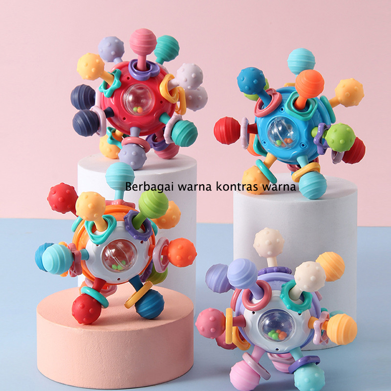 Lucky Cabin Manhattan tangan menggenggam bola bayi mainan multifungsi mainan multifungsi bayi 0-1 tahun pendidikan pendidikan dini bayi 3 sampai 6 bulan pelatihan cengkeraman menggerogoti tumbuh gigi permen karet tekan suara BPA-bebas