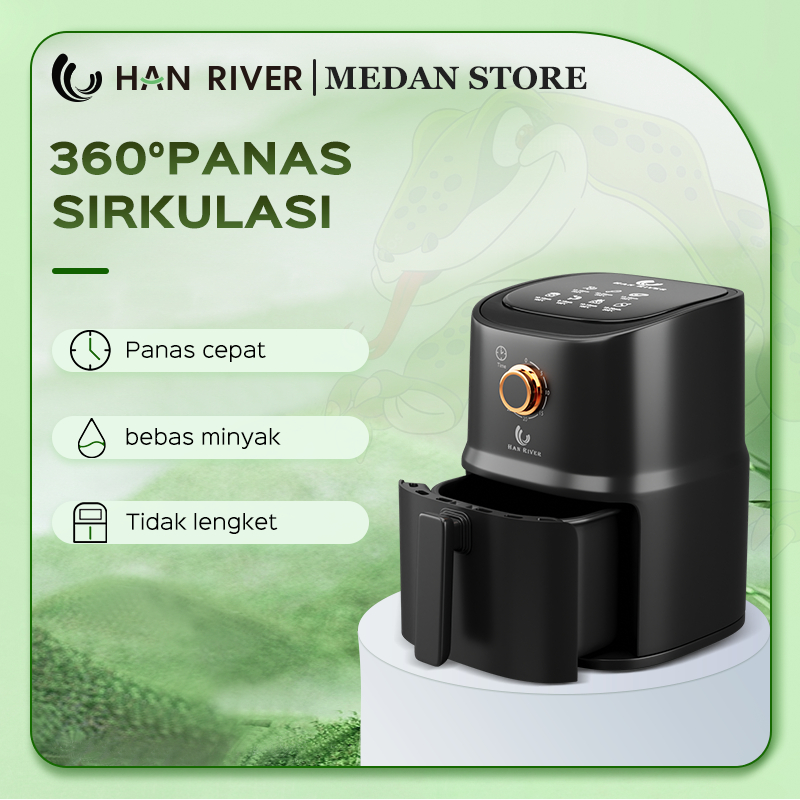HAN RIVER Medan Air Fryer 3.5L Low Power 500W Pemanasan Termostatik Tombol Putar