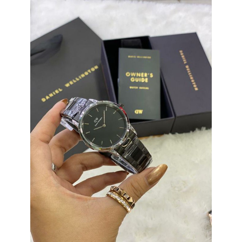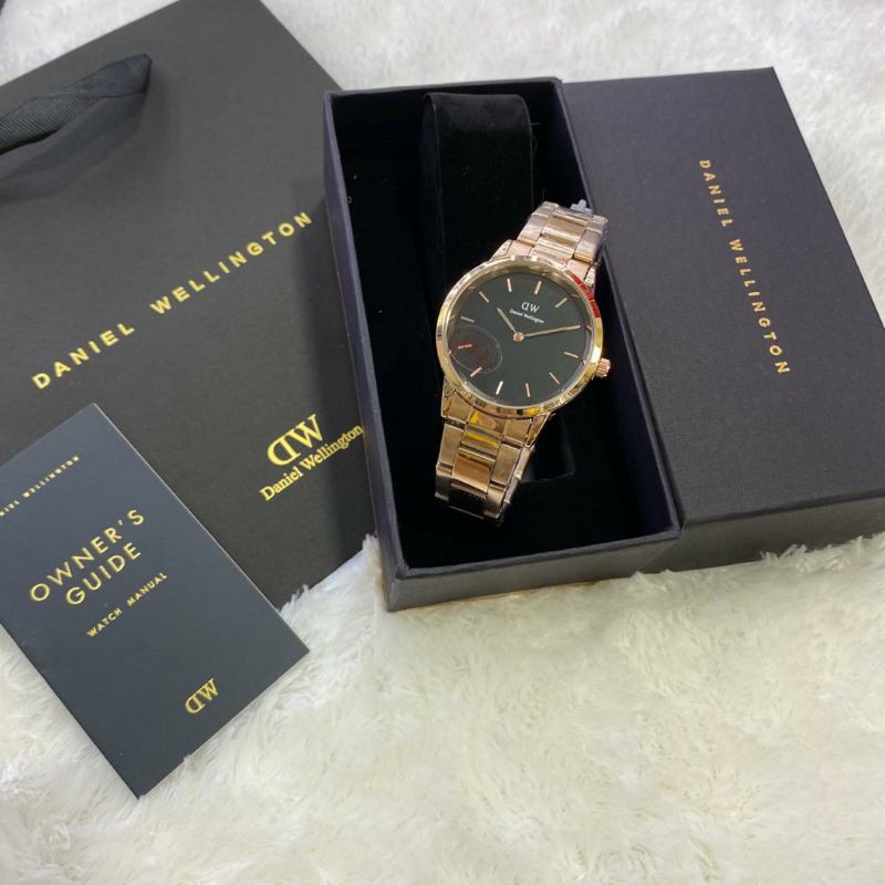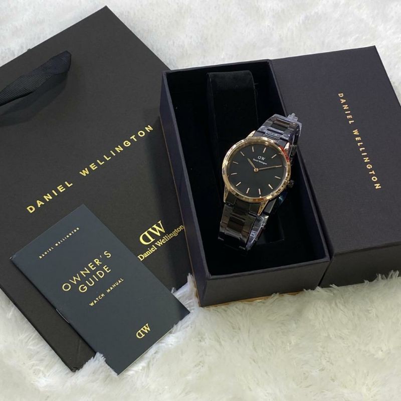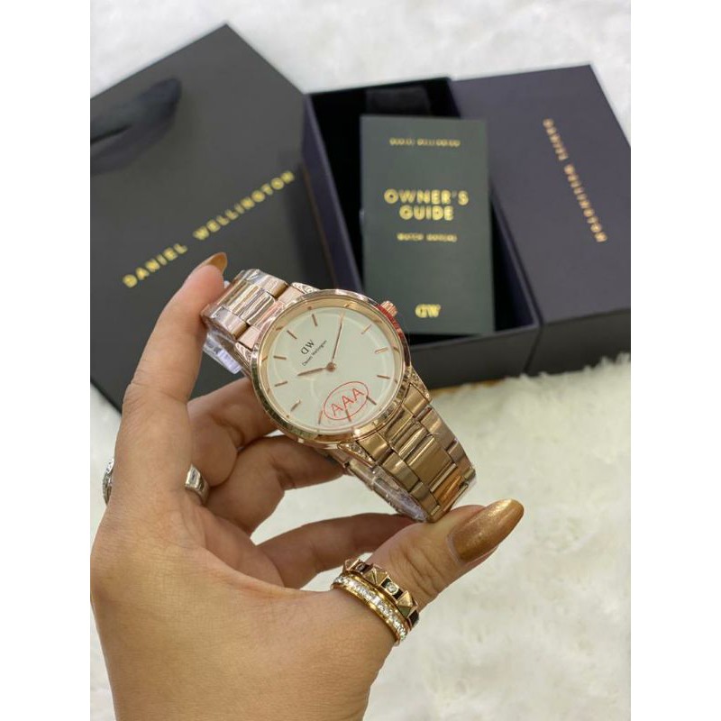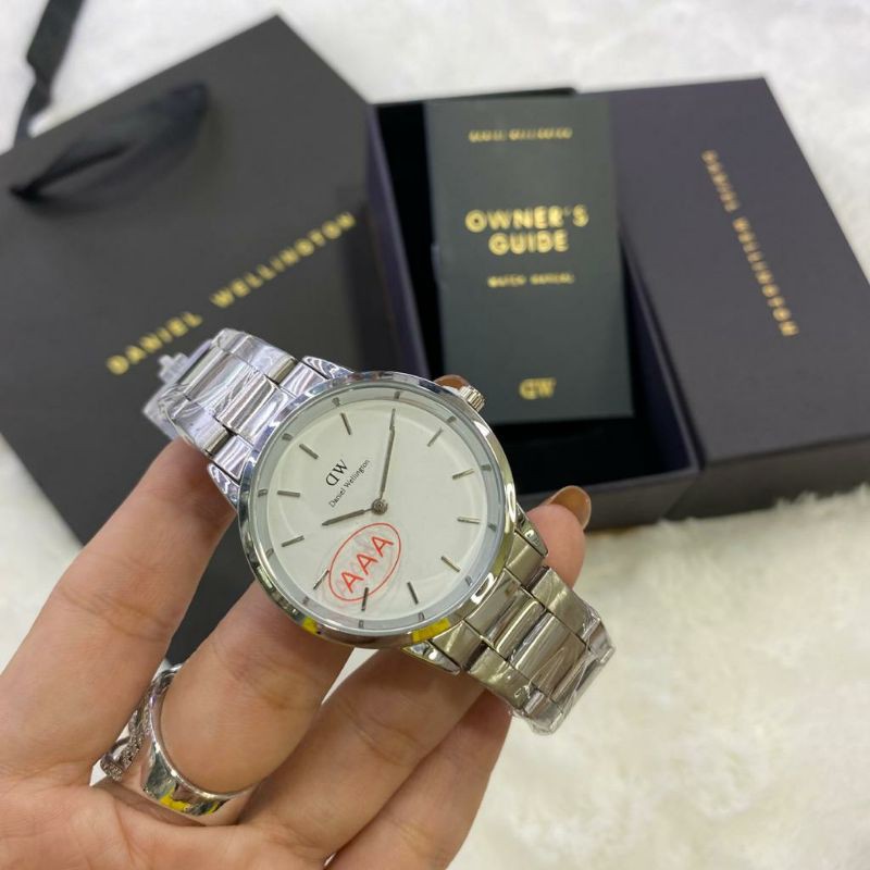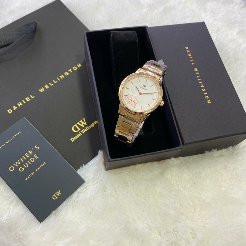 paket box + manual + paperbag || jam tangan wanita D.W polos balok YK-2511SXR rantai diameter 3,6cm