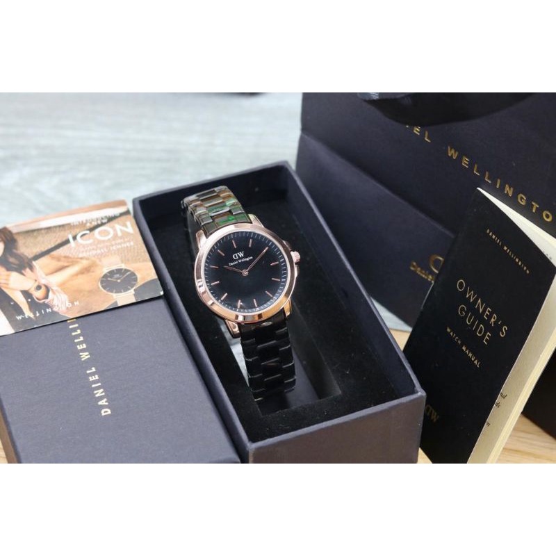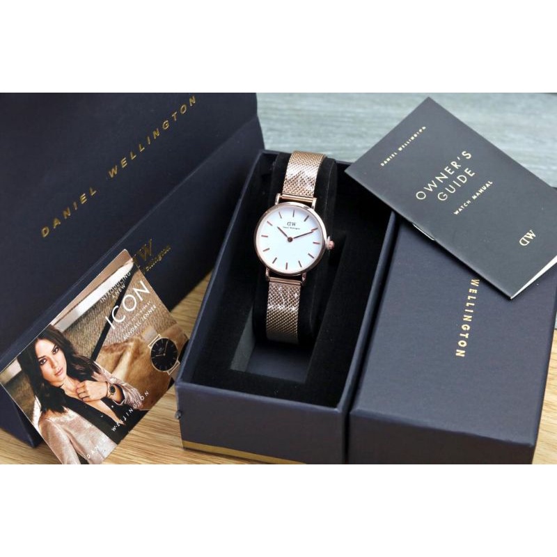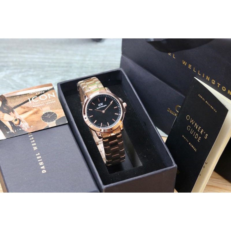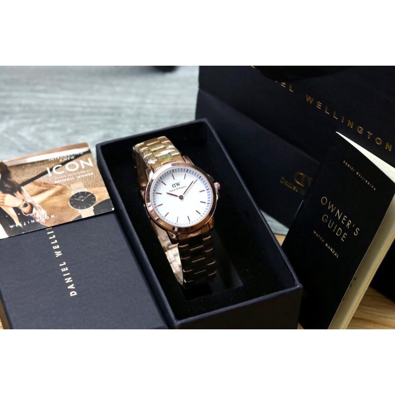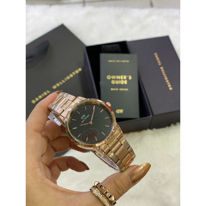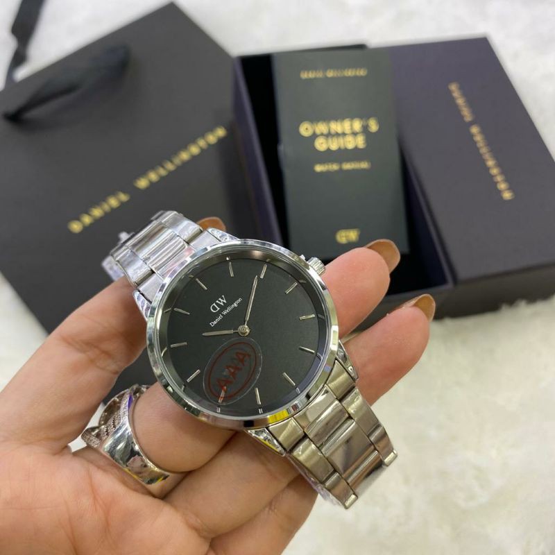paket box + manual + paperbag || jam tangan wanita D.W polos balok YK-2511SXR rantai diameter 3,6cm