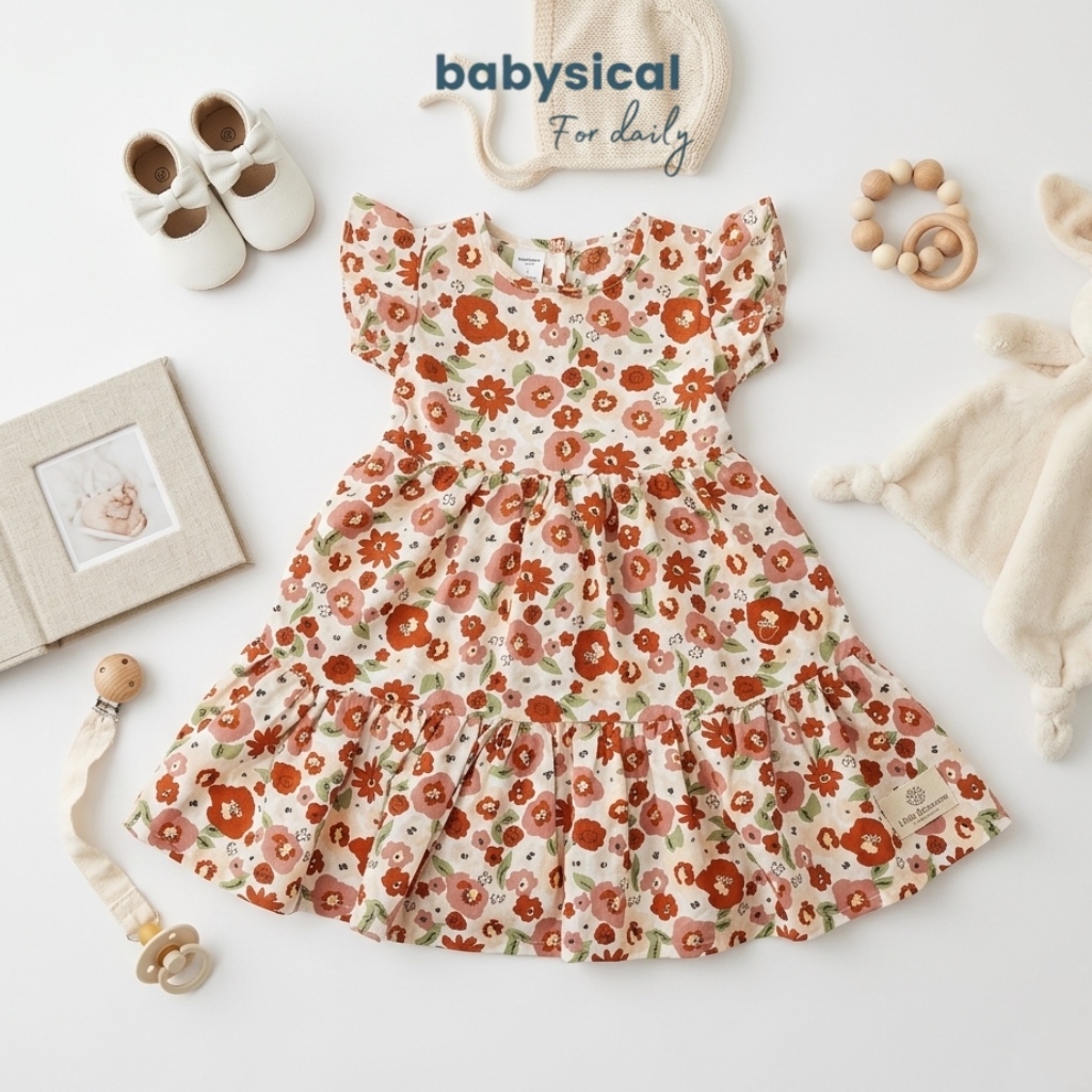 BABYSICAL 1-6 Tahun Serena Dress In Daisy Flower - Dress Baju Anak Perempuan Cantik Dress Balita Anak Serena Dress Vol 2