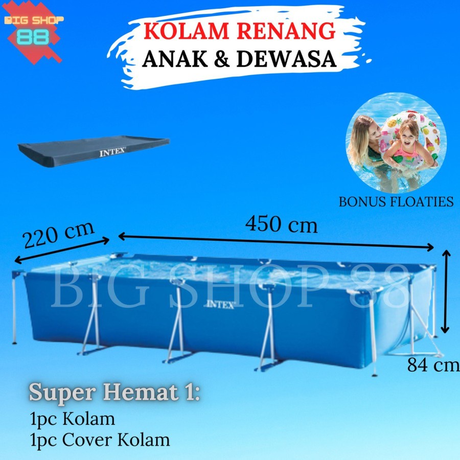 PAKET HEMAT KOLAM RENANG PORTABLE PORTABEL FAMILY SWIMMING POOL RECTANGULAR FRAME POOL JUMBO BIG BESAR 4.5M 450CM TERLENGKAP