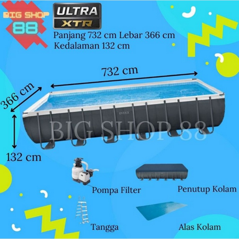 Kolam Renang Besar Jumbo Kolam Renang Keluarga Merk Intex 7M 7Meter Ultra XTR Prism Frame Pool 732 X 366 X132 Cm