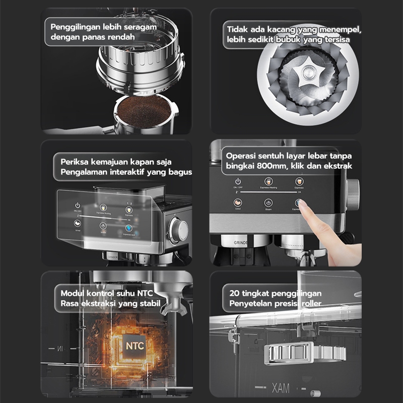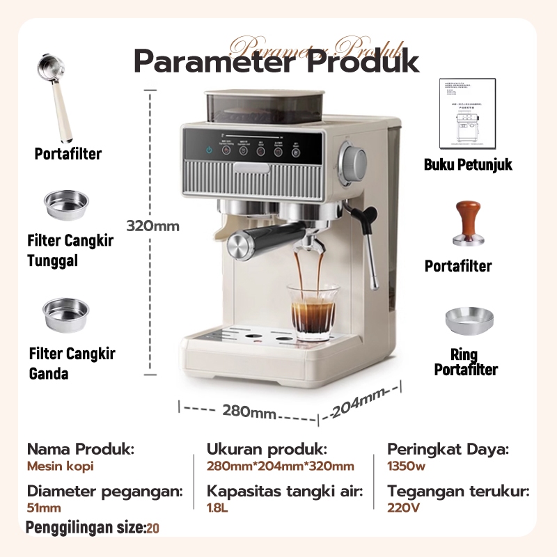 Mesin Kopi Espressoee Cold/hot Brew Grinder 51MM Heater Coffee Maker Smart Screen Kontrol/Penggiling Kopi Digital 20 size