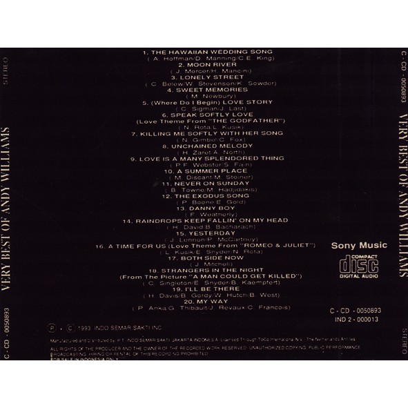 CD MUSIC ANDY WILLIAMS VERY BEST OF
