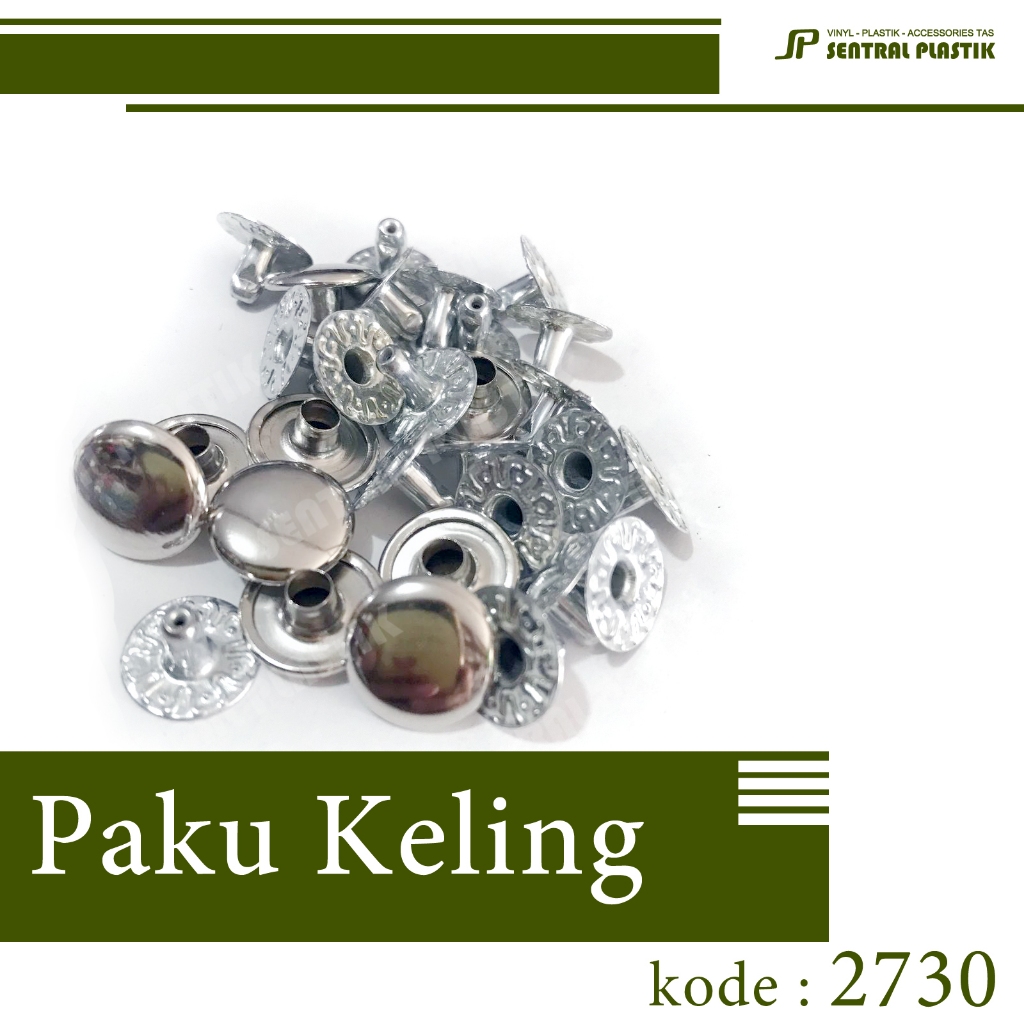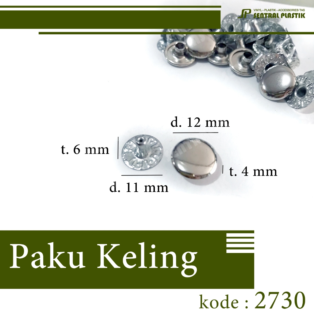 Paku Keling/eyelet/rivet kode 2730 (isi 100 pasang) nikel 12 mm untuk bahan gelang/tas/kerajinan dll