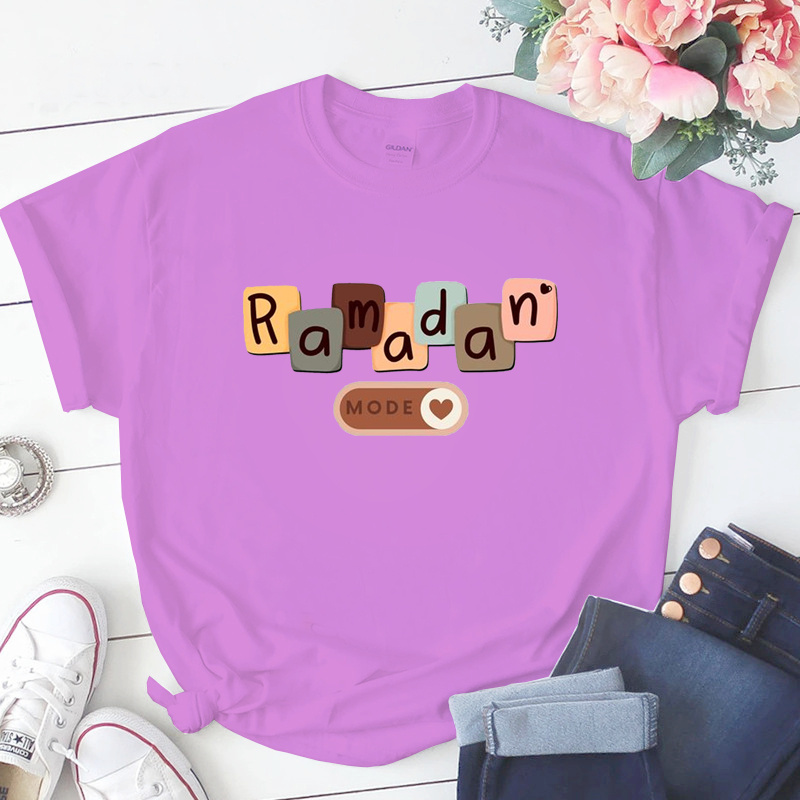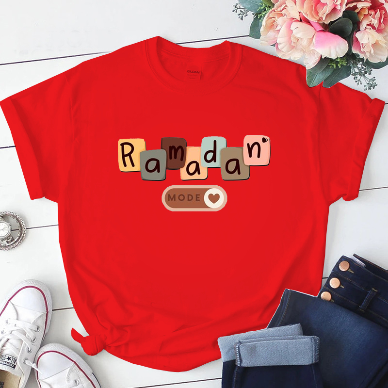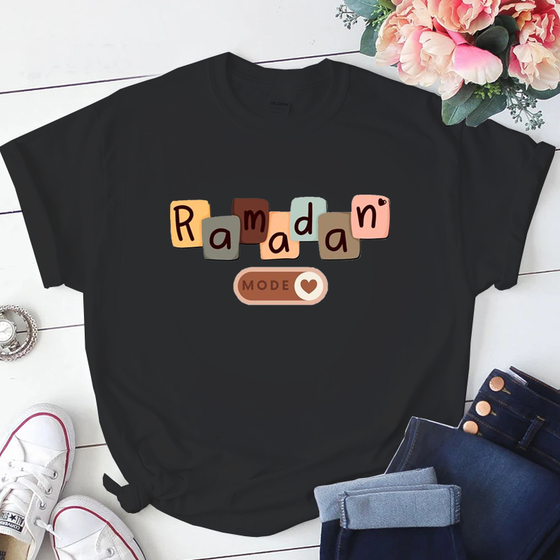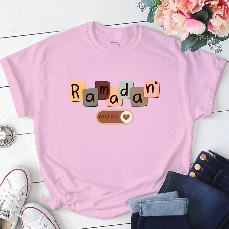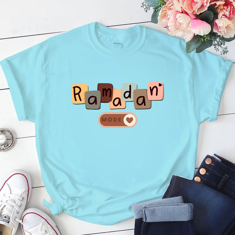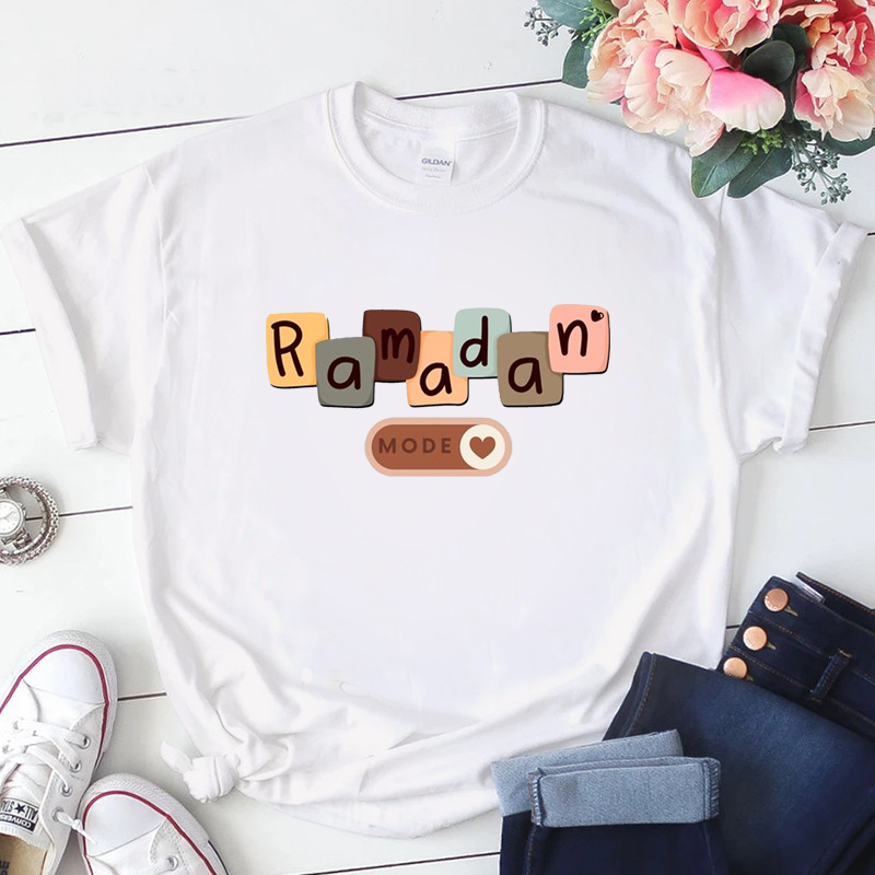 Baju Kaos Perempuan Muslim Lengan Pendek Lucu Eid Mubarak Lebaran Wanita Dewasa Jumbo Oversize