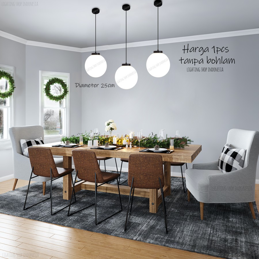 Lampu gantung bola susu 25cm bulat minimalis acrylic cafe resto