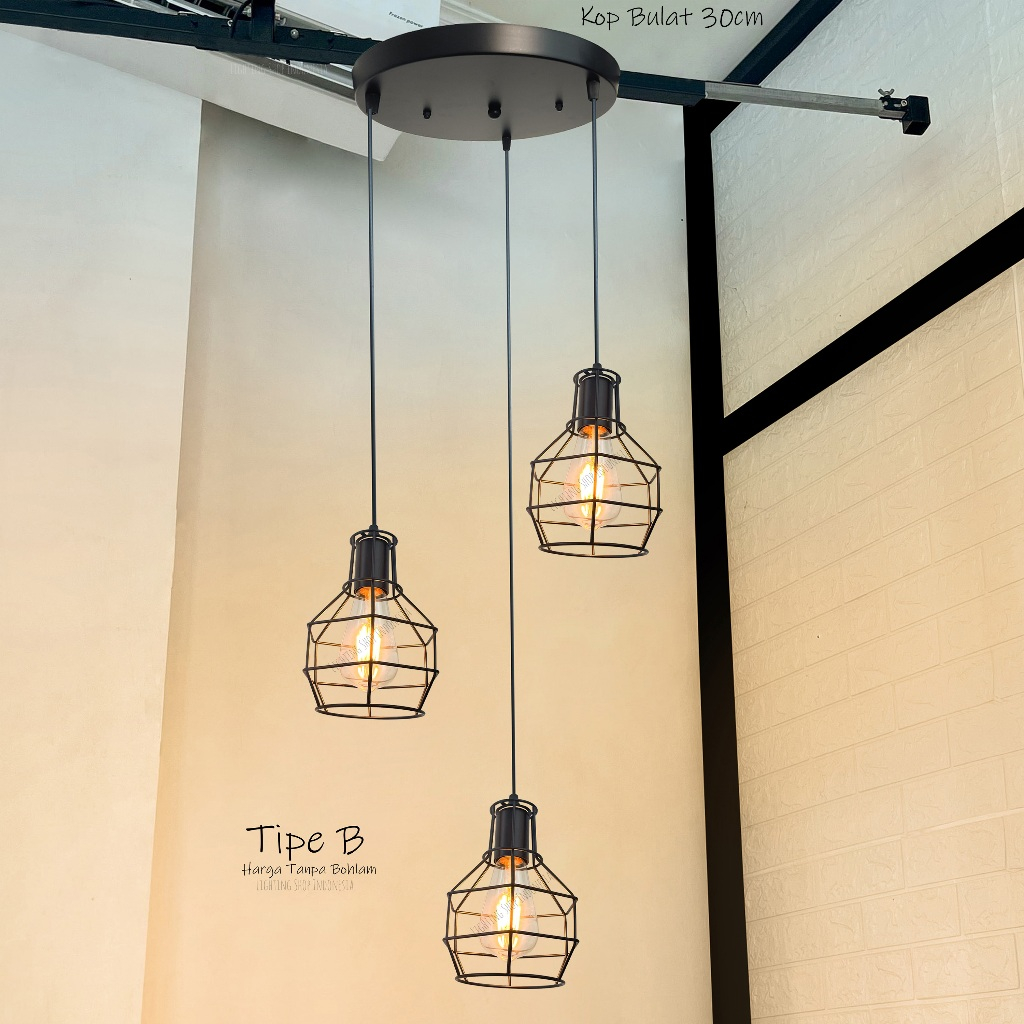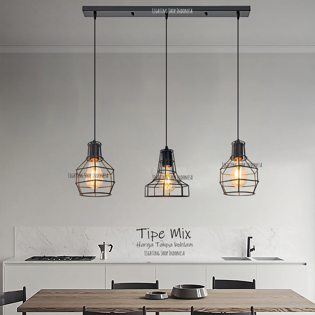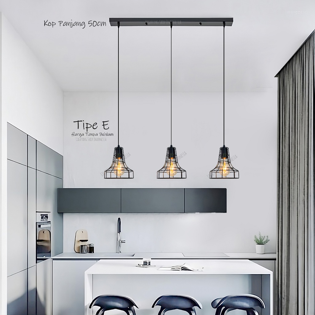 Lampu gantung 3in1 dapet 1set 3Lampu base kop bulat panjang minimalis simple hias kafe