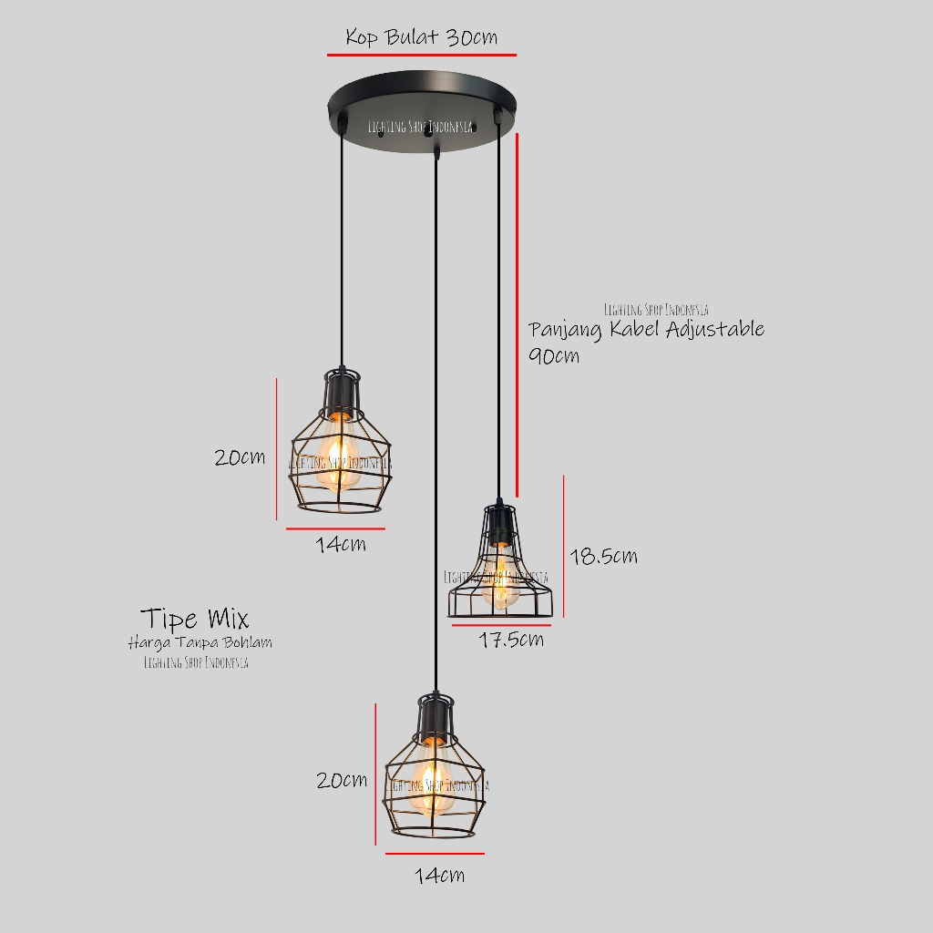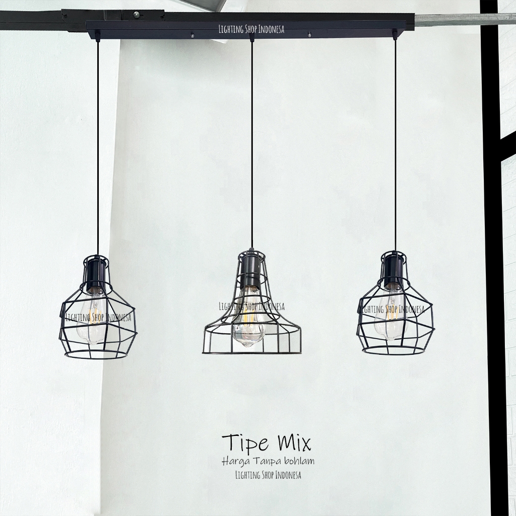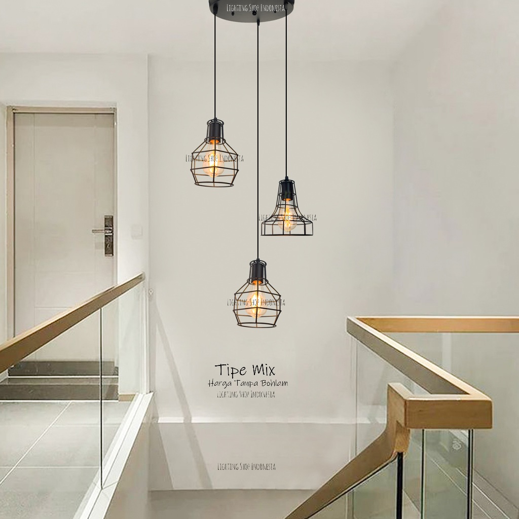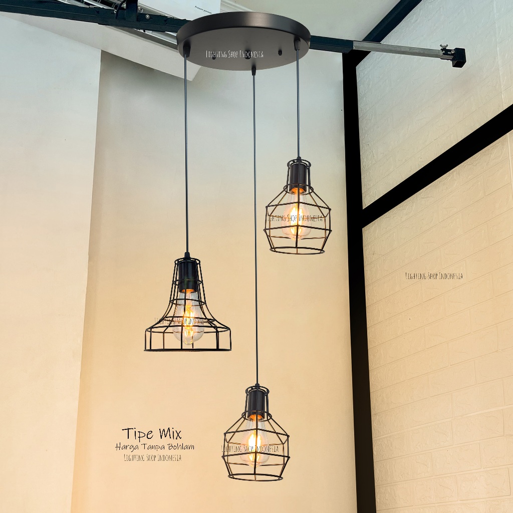 Lampu gantung 3in1 dapet 1set 3Lampu base kop bulat panjang minimalis simple hias kafe