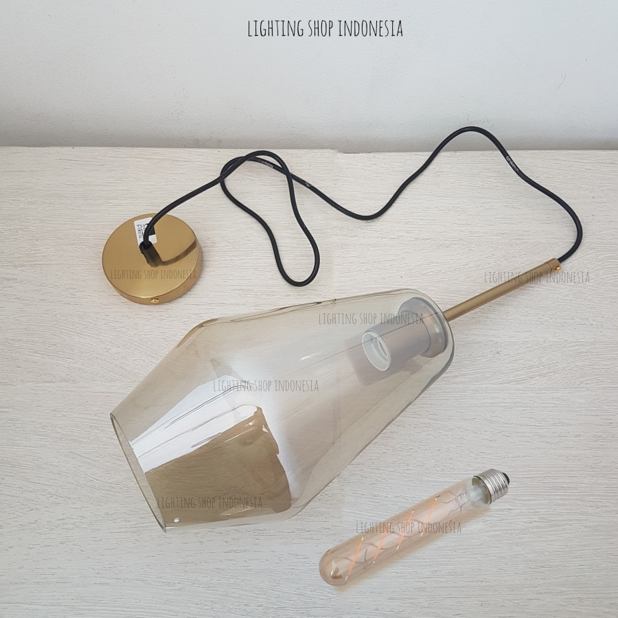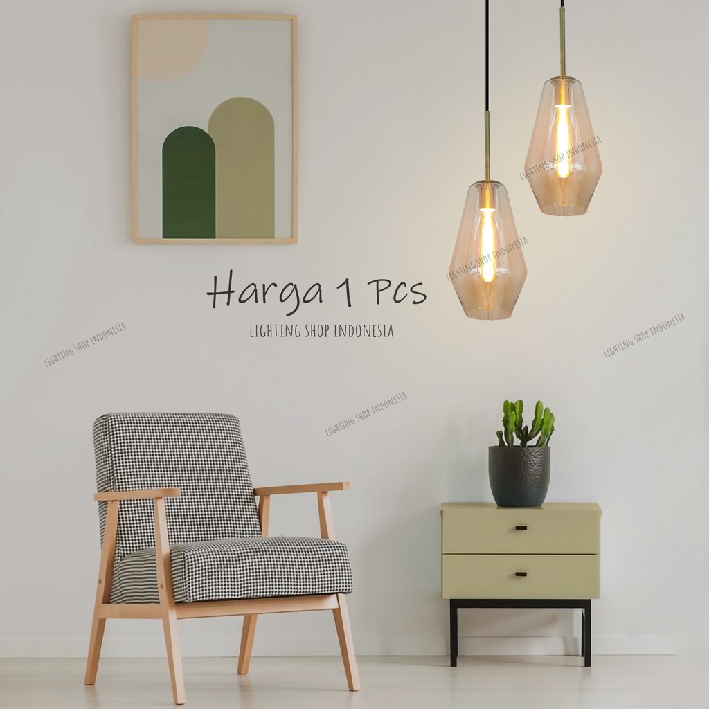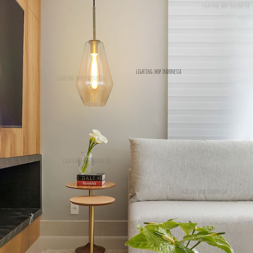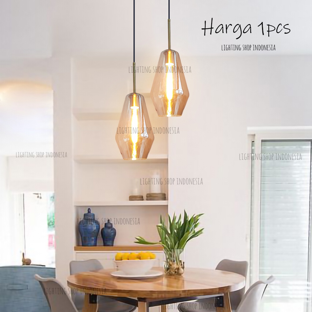 Lampu gantung gold kaca teh minimalis modern meja makan ruang tamu