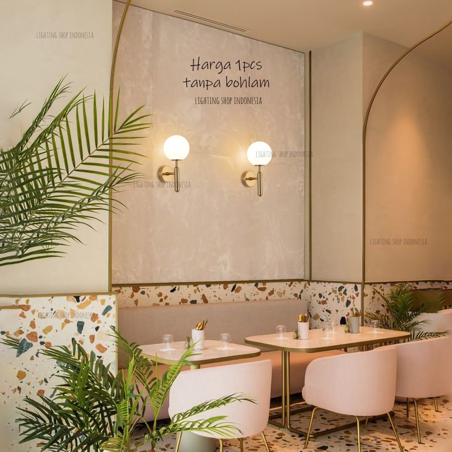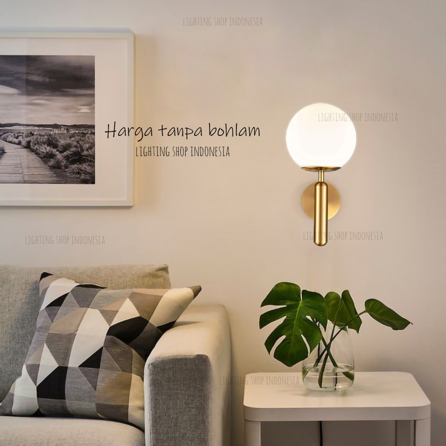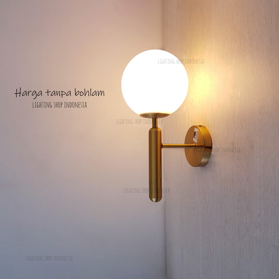 Lampu dinding gold modern kaca susu minimalis ruang tamu bed side