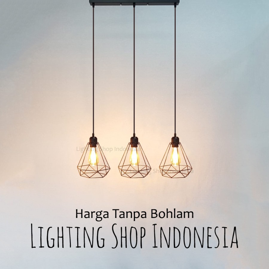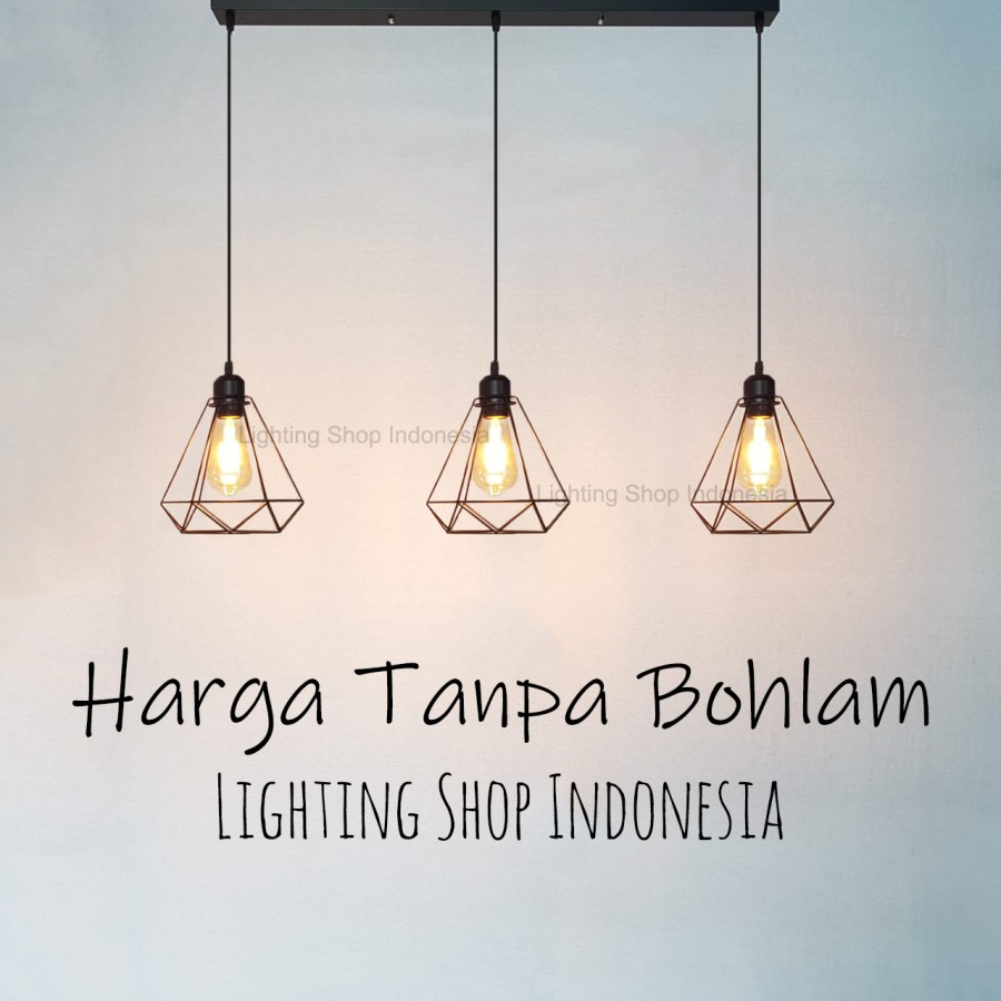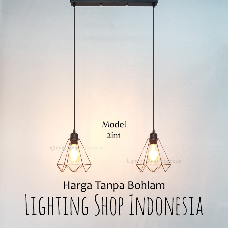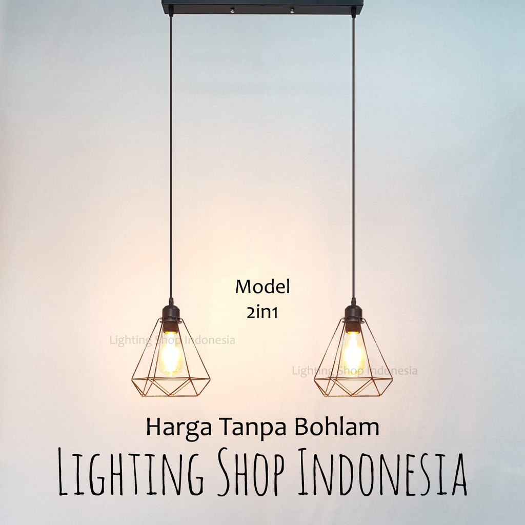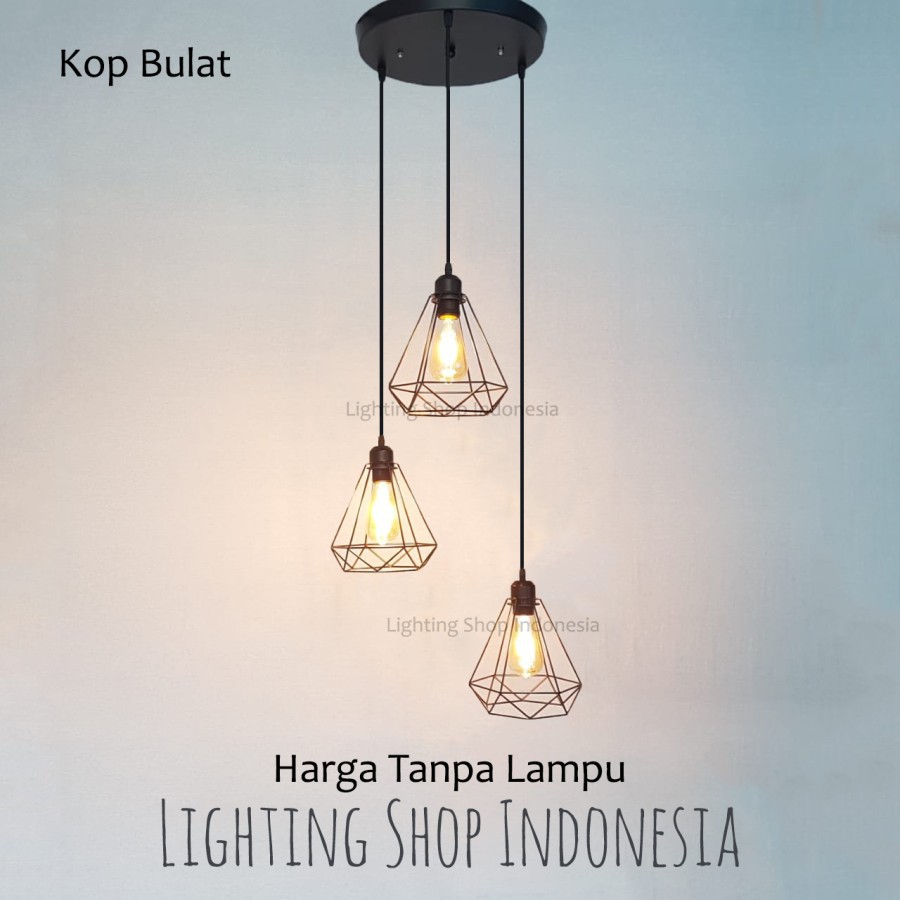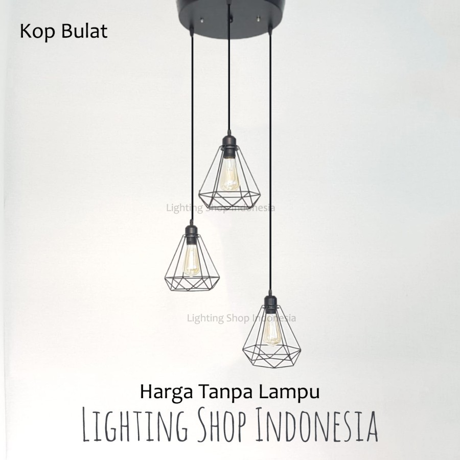 lampu gantung 3in1 dan 2in1 daimond base kop panjang bulat 1set isi 2 / 3 lampu