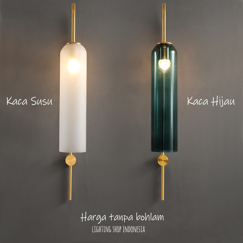 Lampu dinding gold kaca panjang hijau abu teh susu modern minimalis