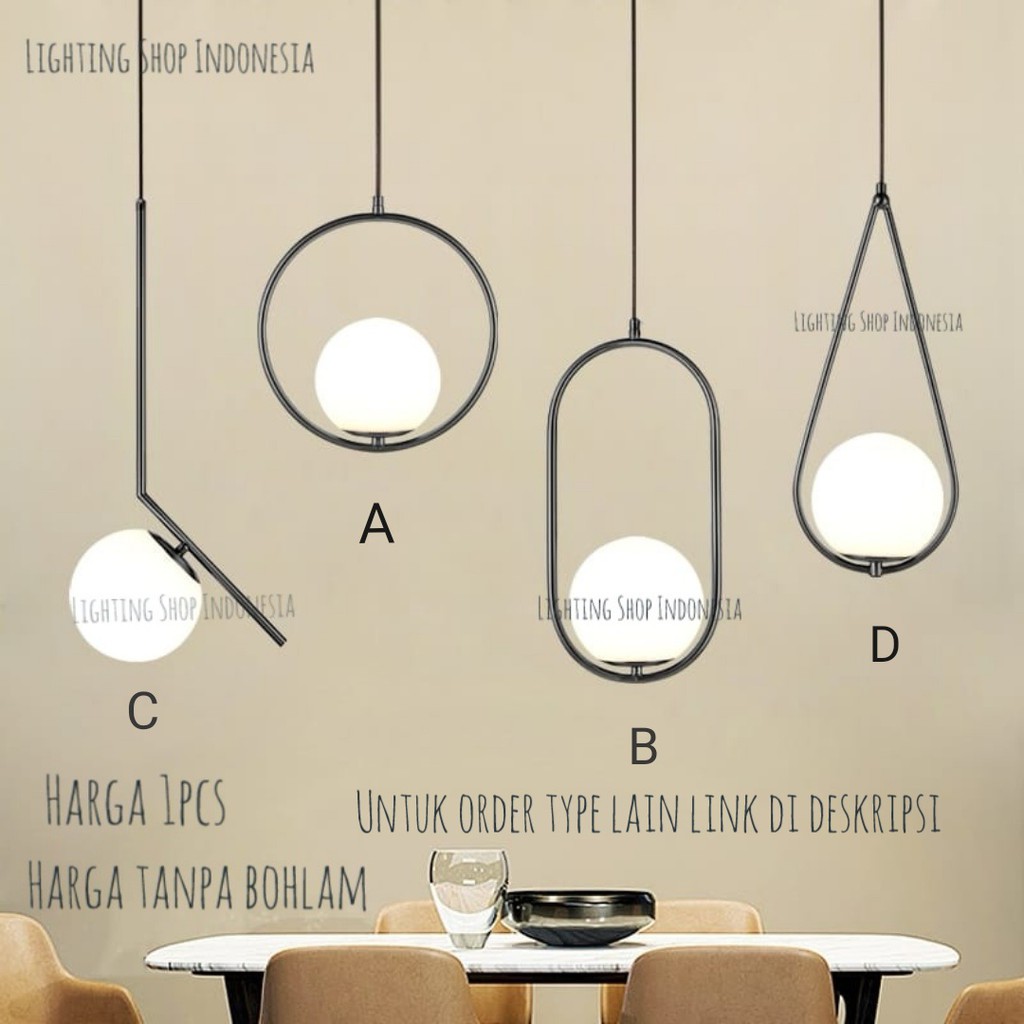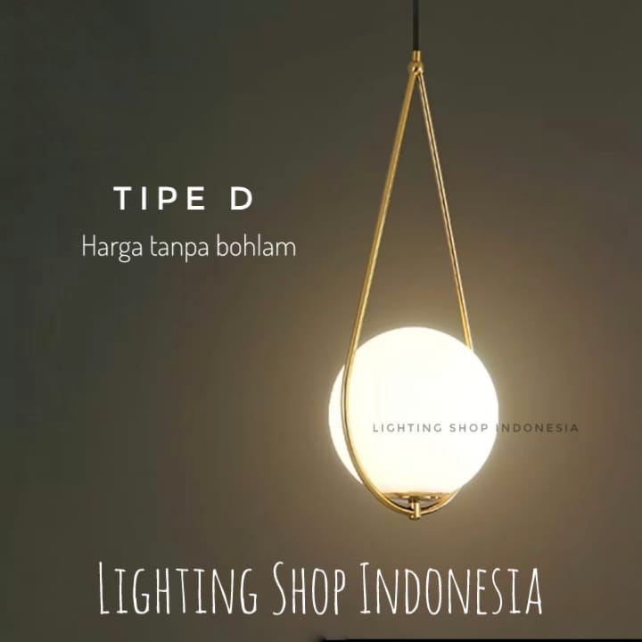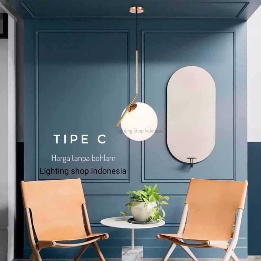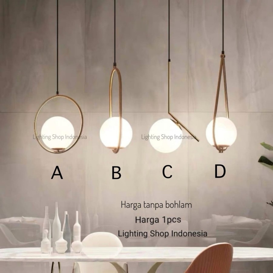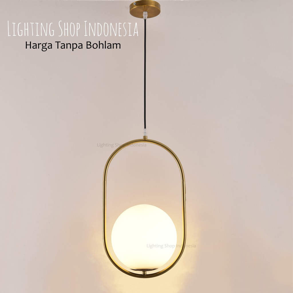 Lampu gantung gold bola kaca susu 20cm modern minimalis