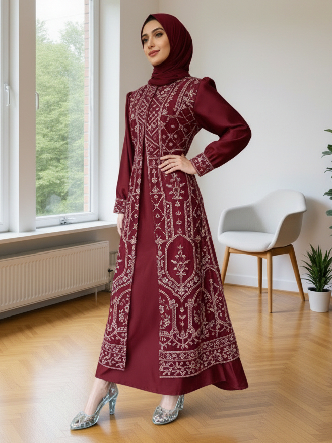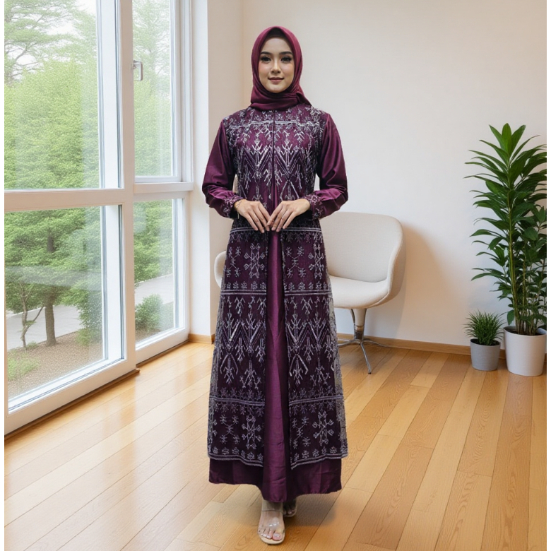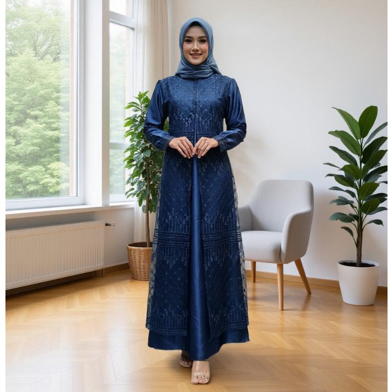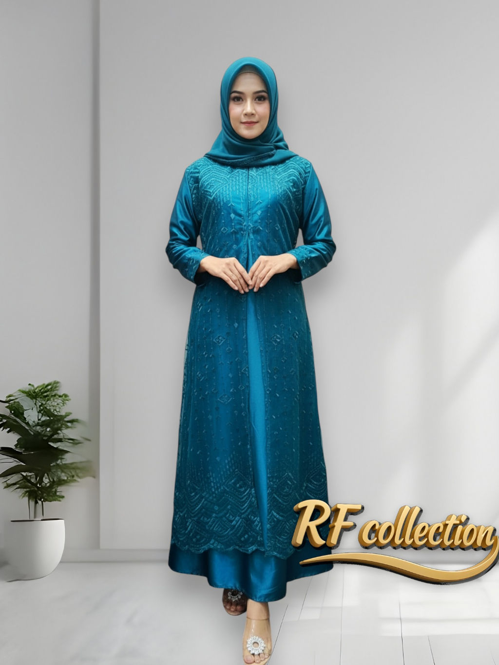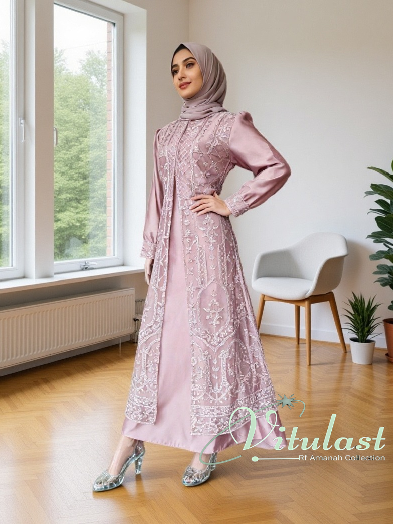 RFV 010 Vitulast Gaun Pesta Brukat Wanita Busui Satin Kekinian Gamis Brukat Pesta Tile Motif Mewah