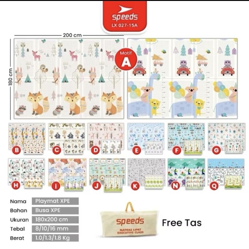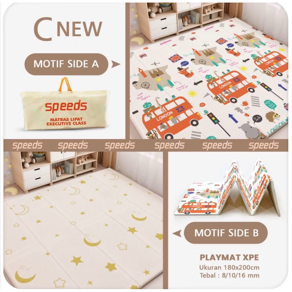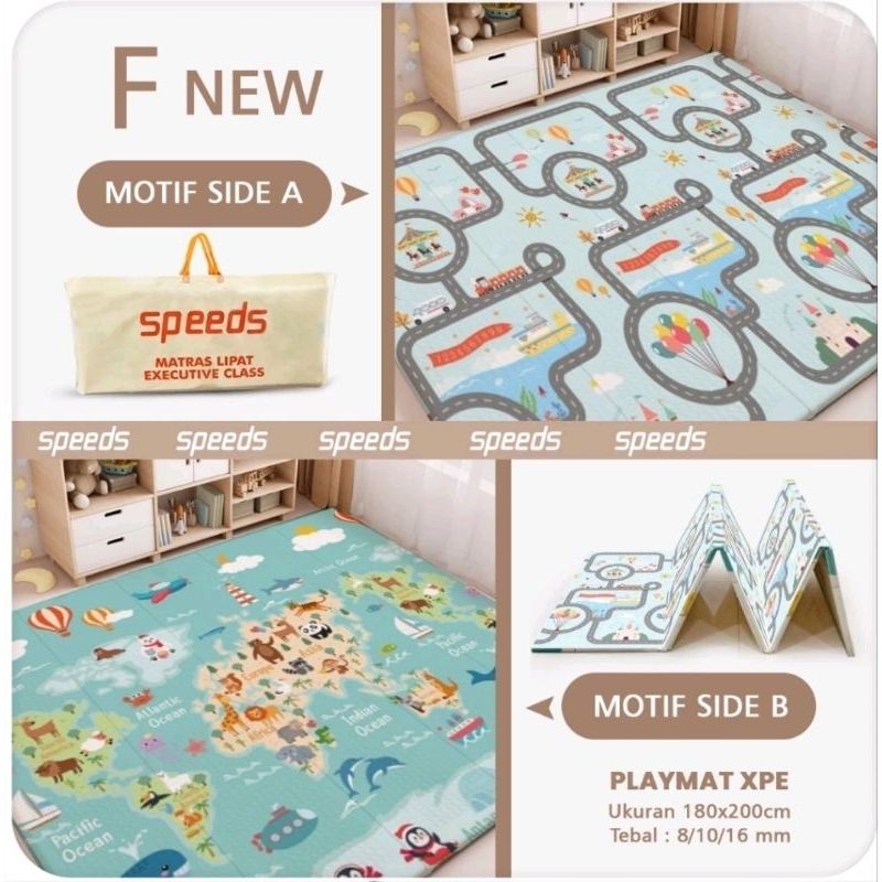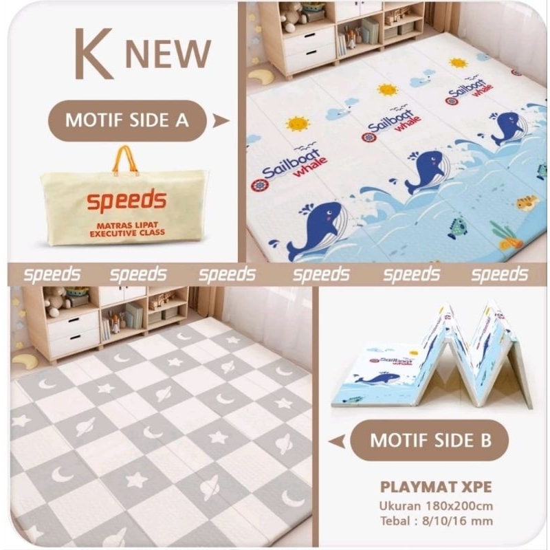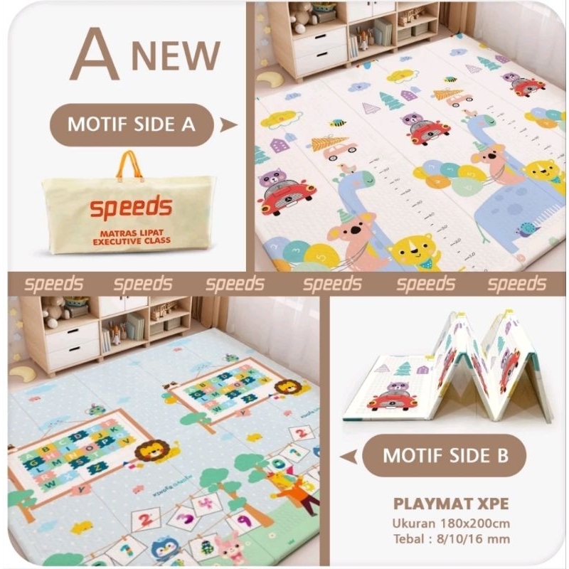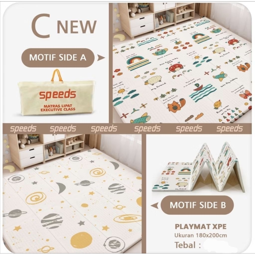 SPEEDS Karpet Lipat SNI Playmat Bayi 200x180cm Tebal 10mm dan 8mm XPE Matras Anak Playmate Baby