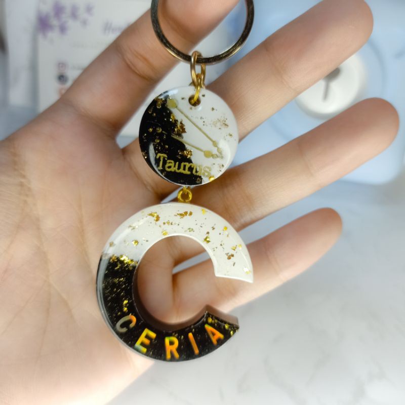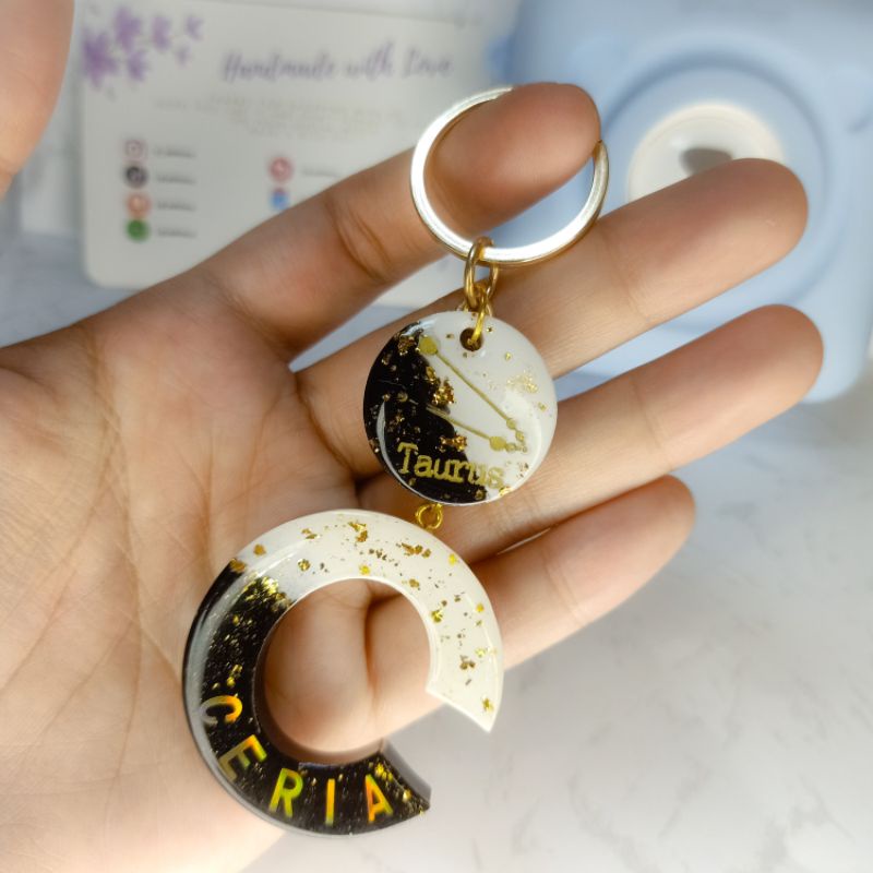 G002 / Custom Resin Keychain / Gantungan Kunci Nama Resin Zodiak / Ganci Resin