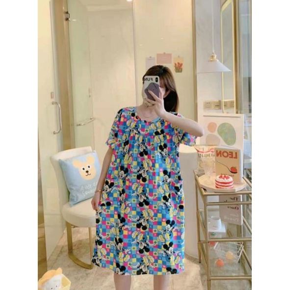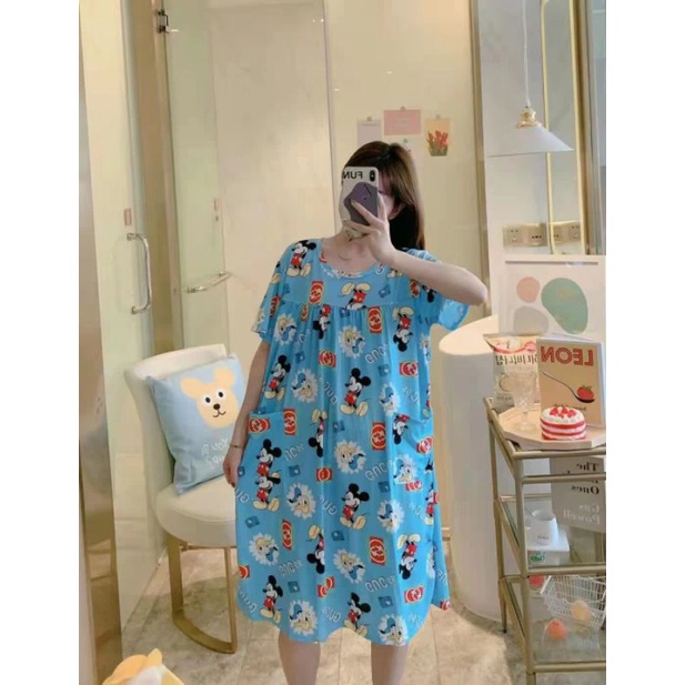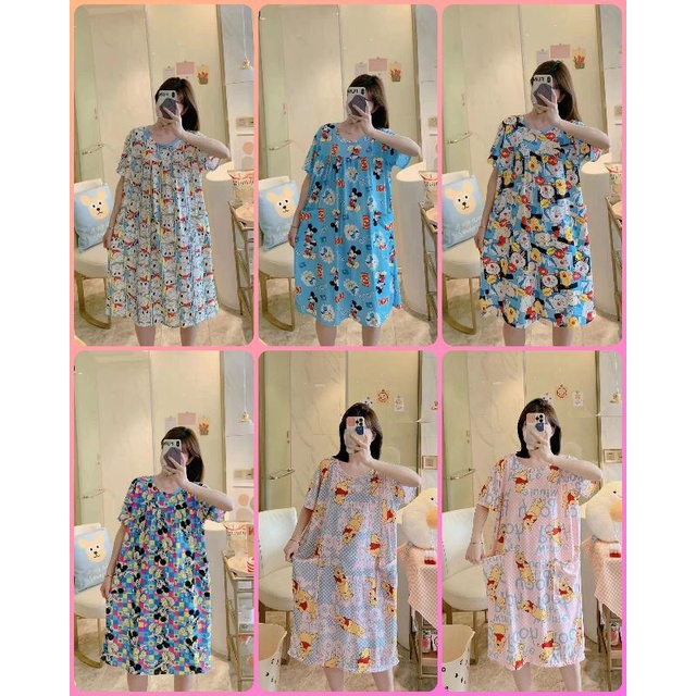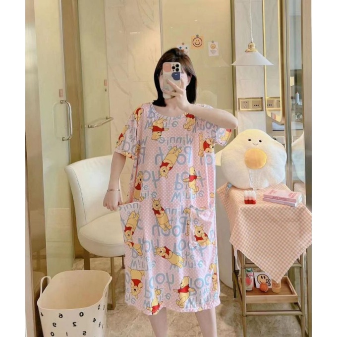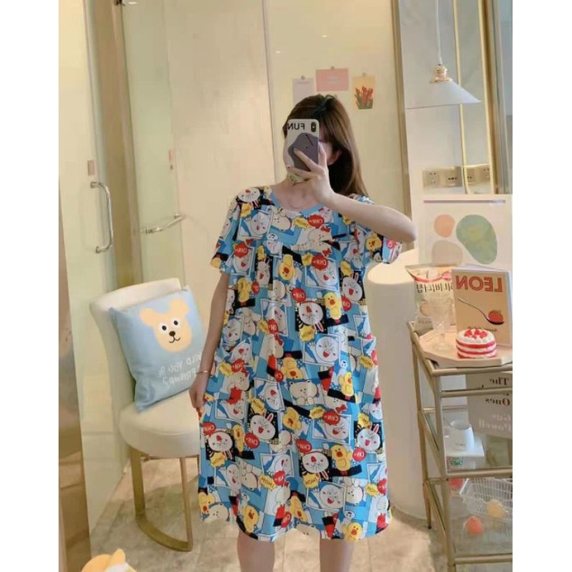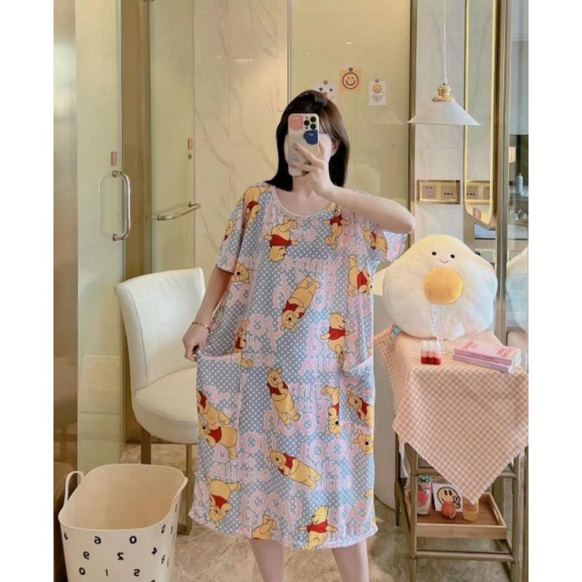 Piyama Daster Bear Line Blue Import Good Quality adem bahan Kaos Import yang fit to L Allsize