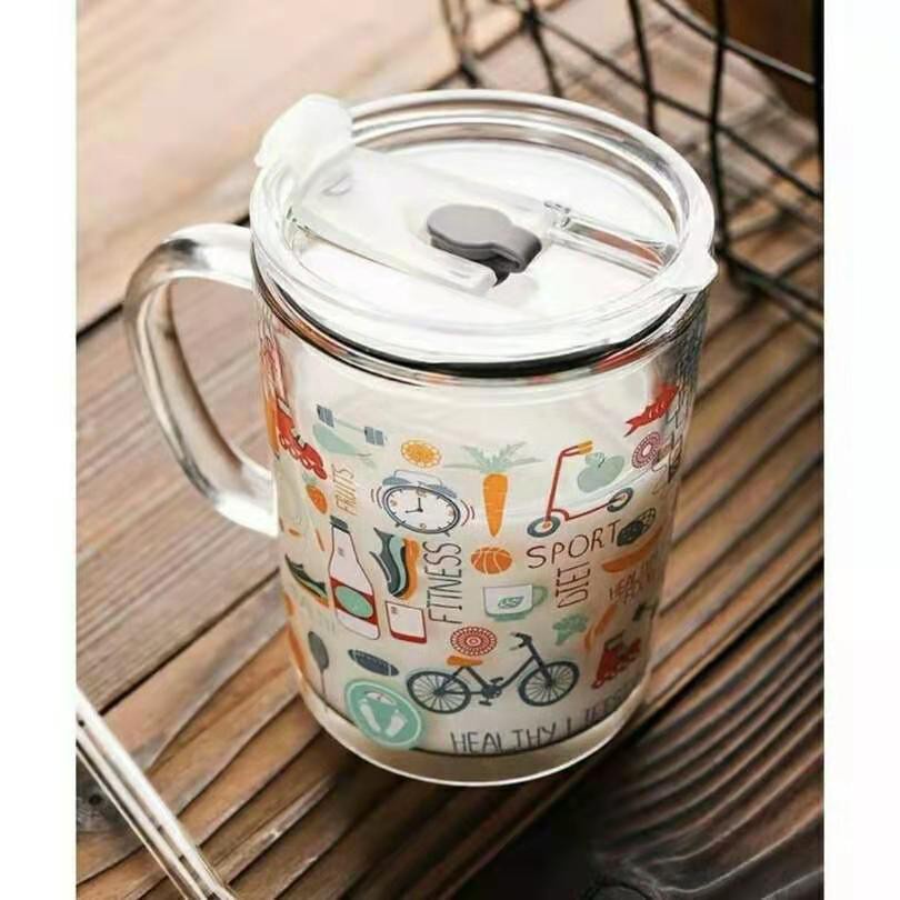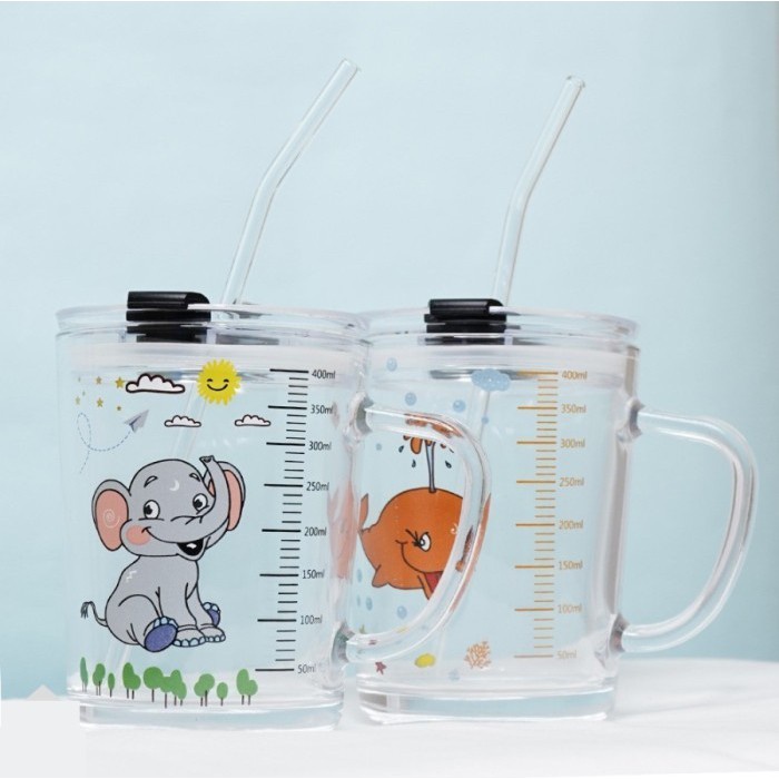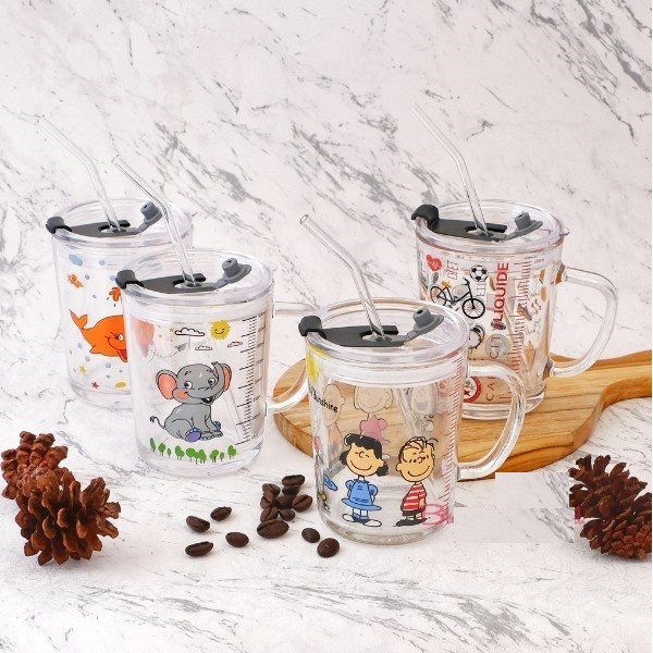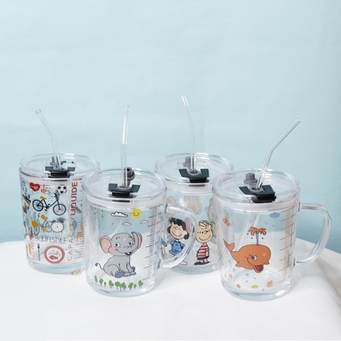 Glass Handle Cup 350ml + Straw/ Tumbler Botol Kaca Sedotan Beling H481