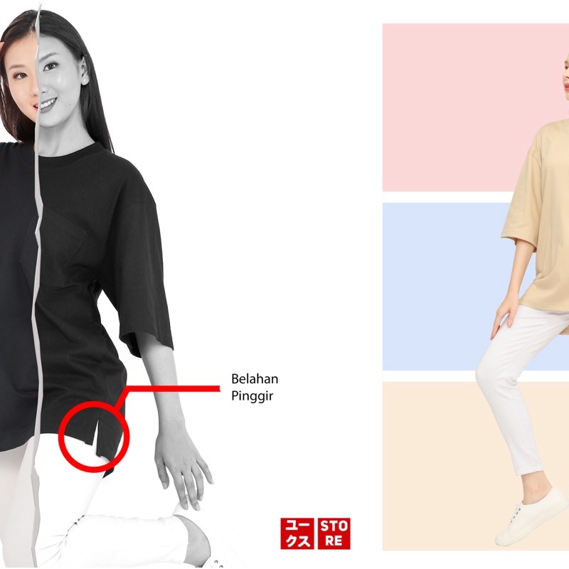 KAOS OVERSIZE POLOS POCKET COTTON COMBED 24s PRIA & WANITA TSHIRT OVERSIZED SAKU BAJU OVERSIZE KOREA