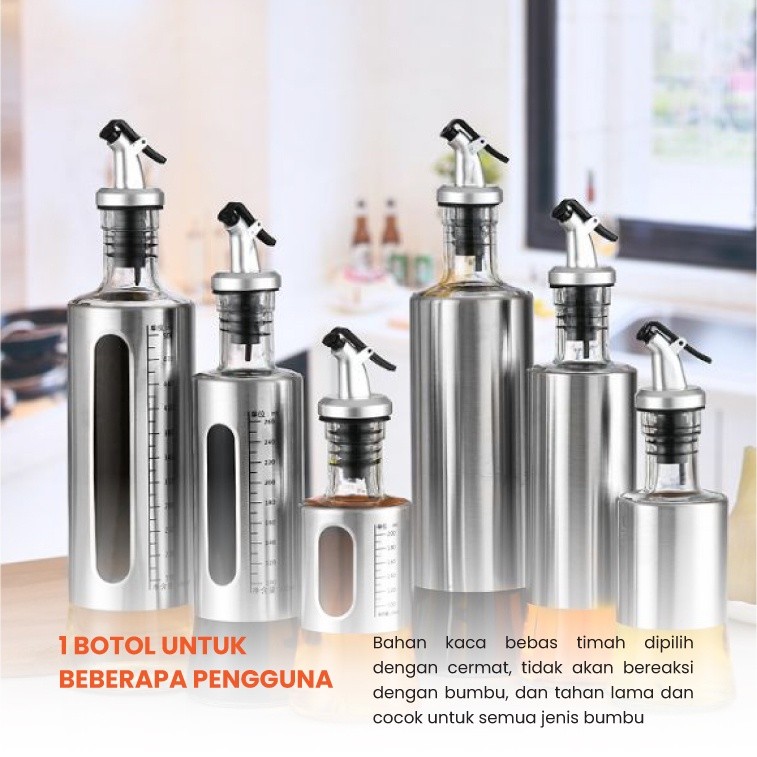 Botol Minyak Goreng Tempat Kecap Syrup Olive Oil Kaca Stainless Steel Murah Bagus Milenial
