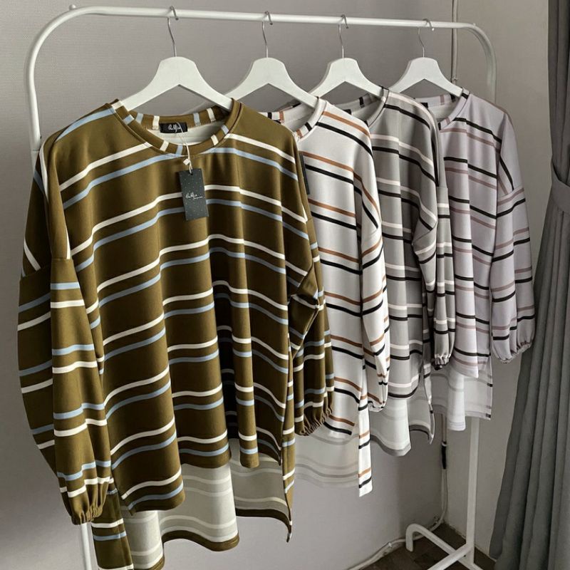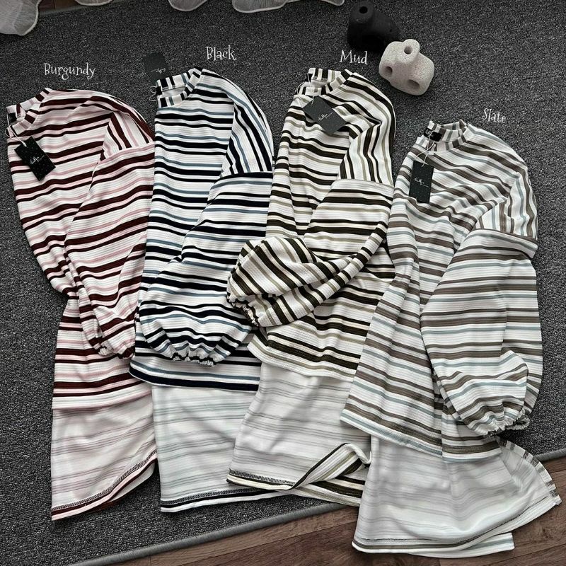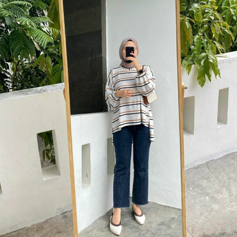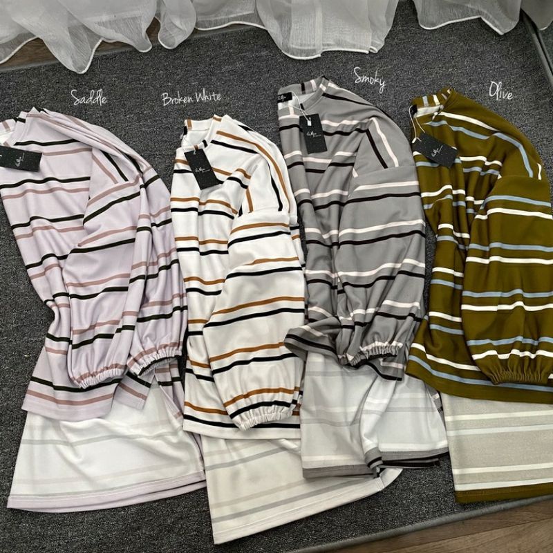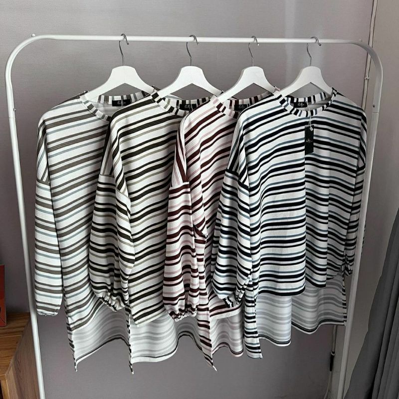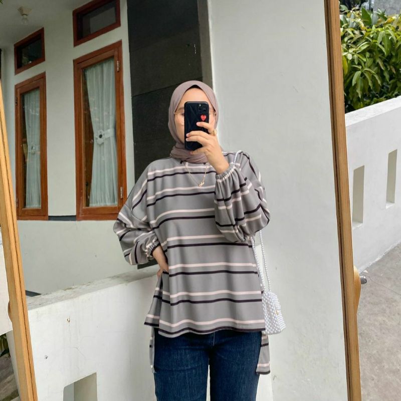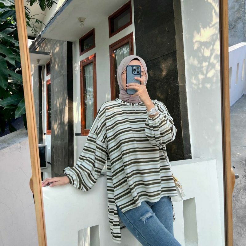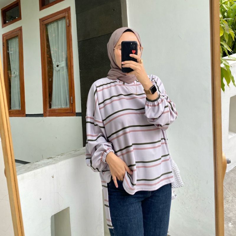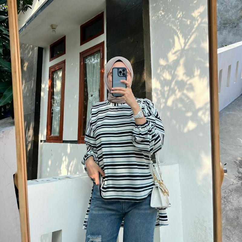 FAVO STRIPY BLOUSE by Outfix / Kaos Wanita Lengan Panjang / Kaos Murah / Atasan Muslim Motif Garis Stripe