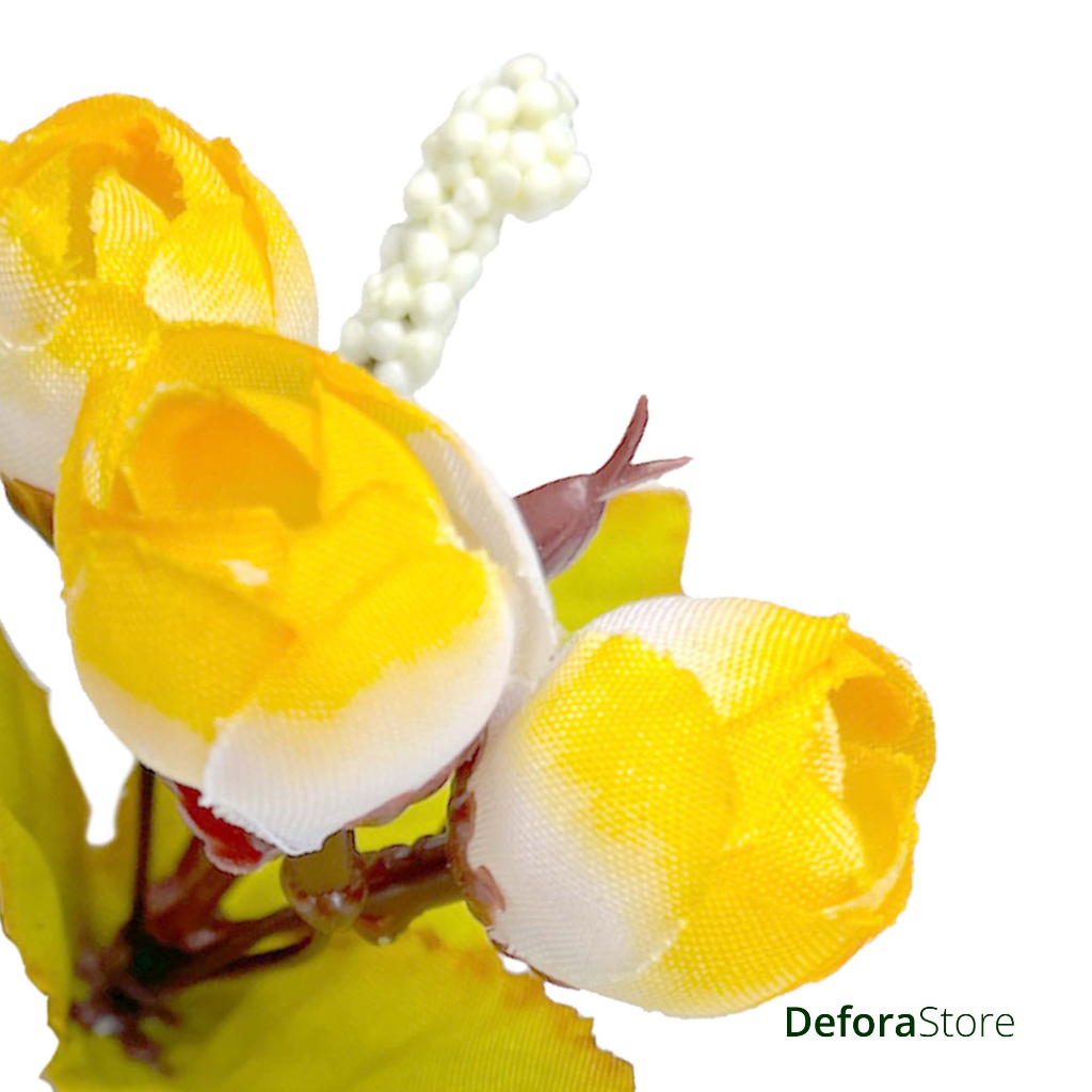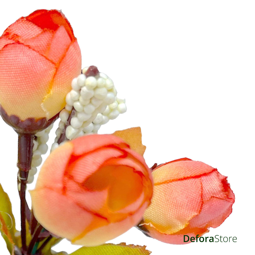Rangkaian Bunga Plastik Artificial Ranumculus Mawar Tangkai Coklat Pot Semen - Defora
