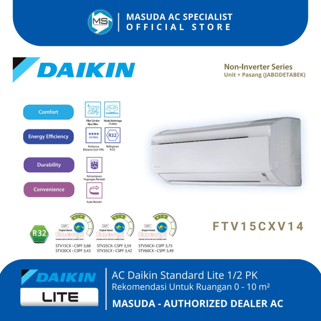 AC Daikin 1/2 PK Standard Lite Malaysia FTV15CXV14 + Pasang