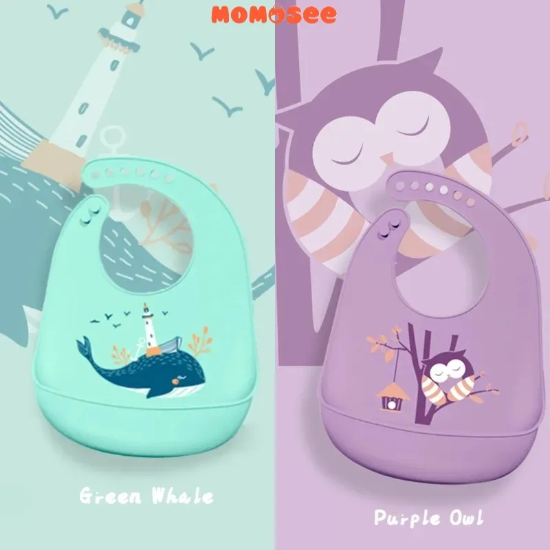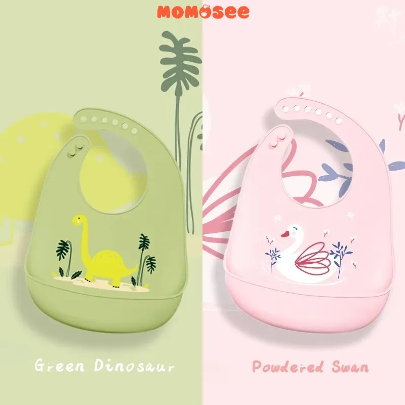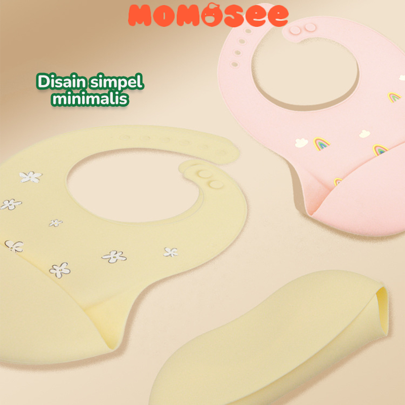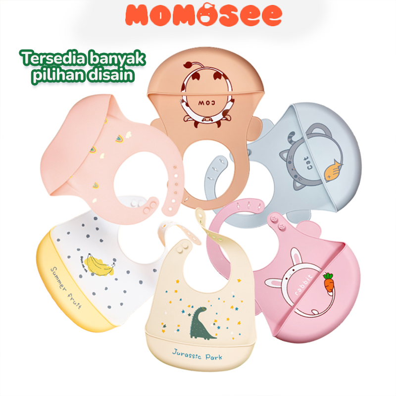 Momosee Celemek Makan Bayi Lucu Perlengkapan Mpasi Bayi Celemek Silicone Bib Waterproof CJ042