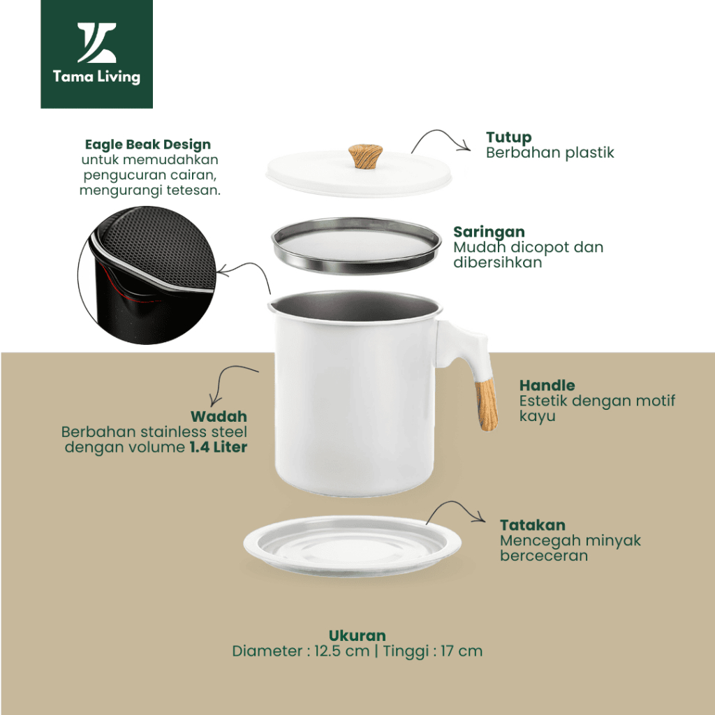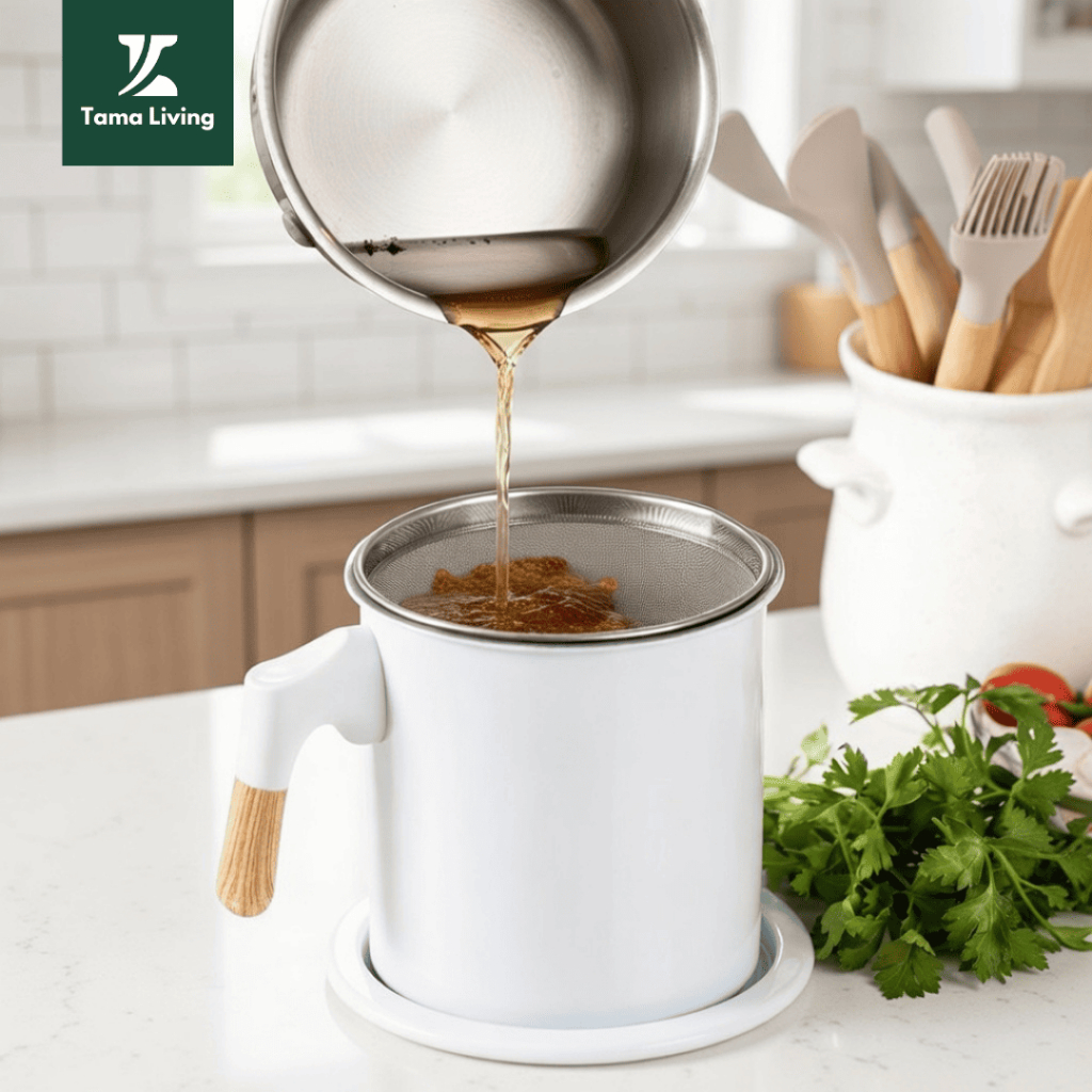 TAMA LIVING Aiko Wadah Penyaring Minyak Goreng Korea Estetik Wadah Minyak Saringan Minyak