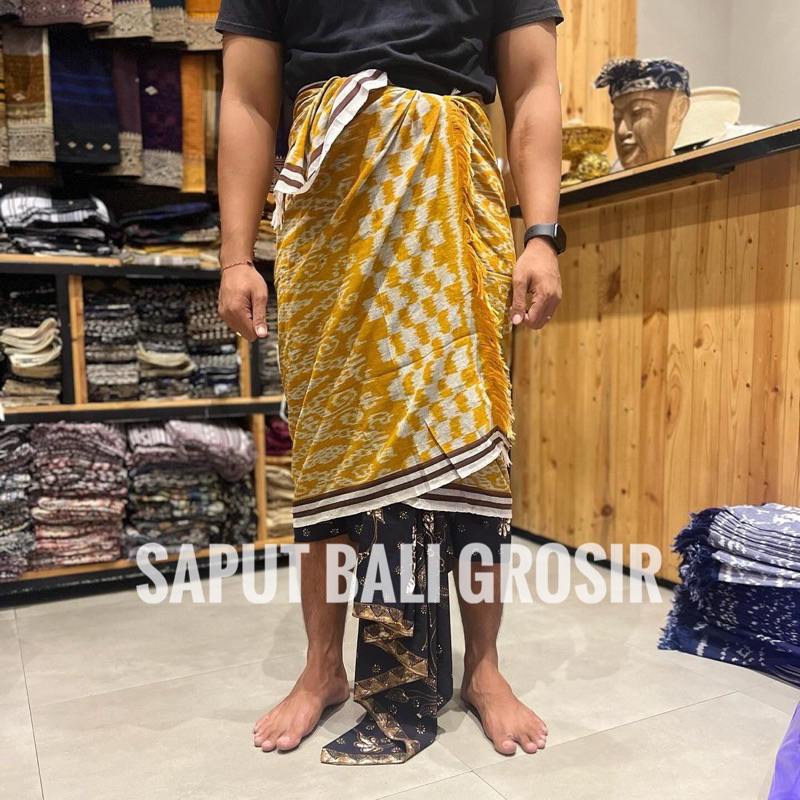 SAPUT BALI GROSIR - saput bali pria terbaru - tenun blanket-udeng-endek-kuning - saput anak laki-laki - saput bali bordir-poleng- polkadot -hitam-putih-kuning-tenun t