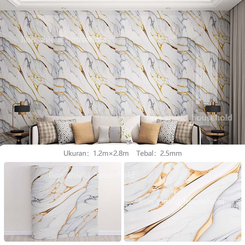 Wallpaper dinding Vinyl Marble 1.2 x 2.8 Meter Tebal 2.5mm / Wallpaper Dinding Motif Vinyl Marble Foam Roll Sticker Kamar Dekorasi PET 120 x 280cm