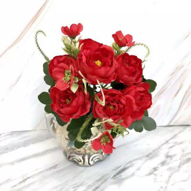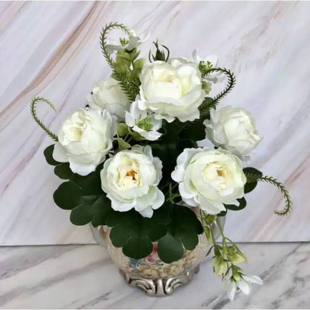 AF27 BUKET BUNGA PEONY GARDENIA ARTIFICIAL HIASAN SESERAHAN MAHAR RUSTIC - HOMEDECOR SHABBYCHIC