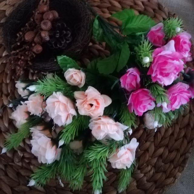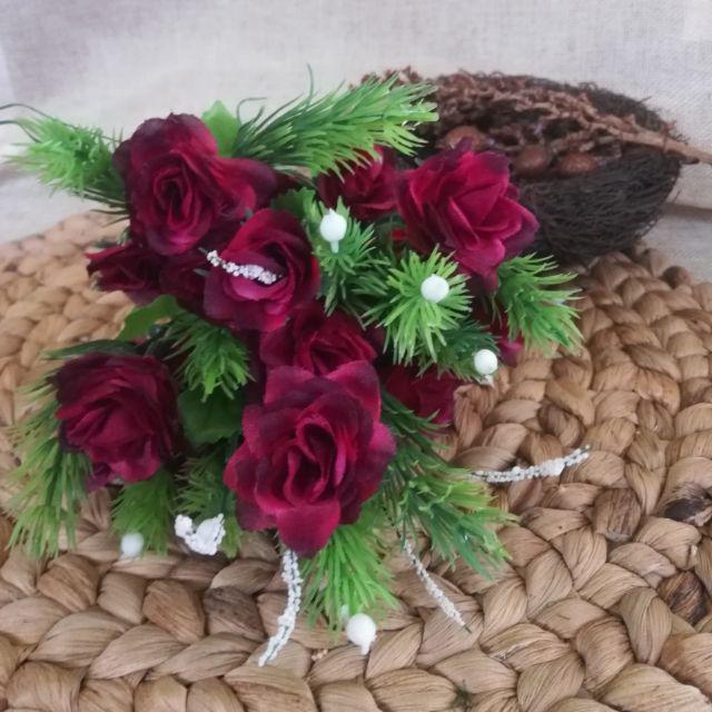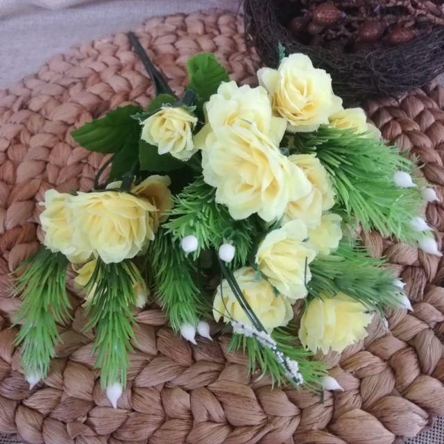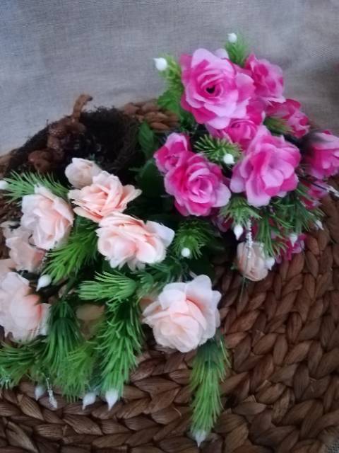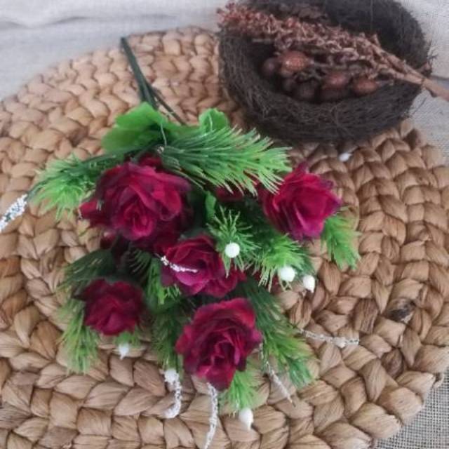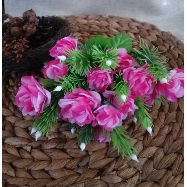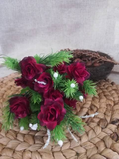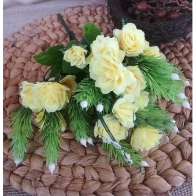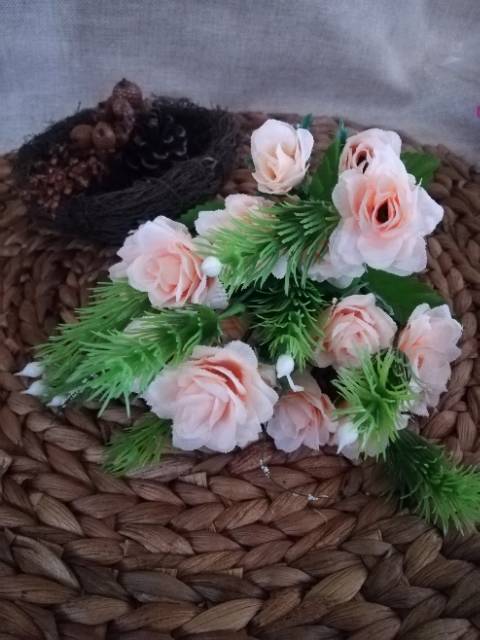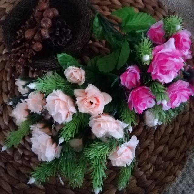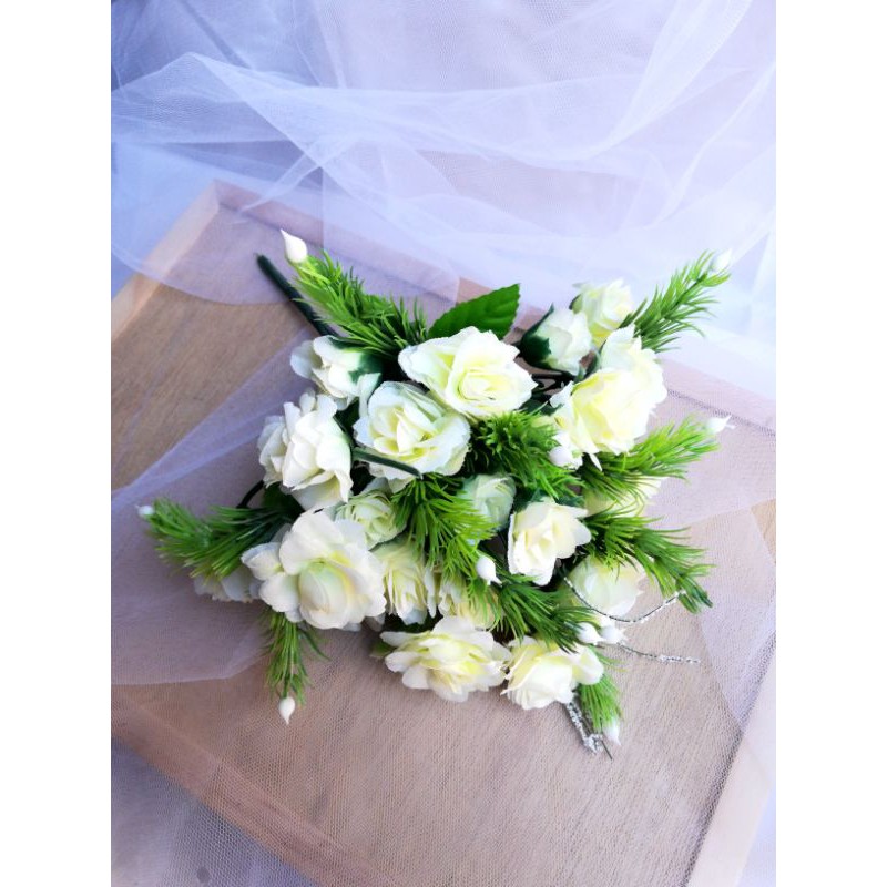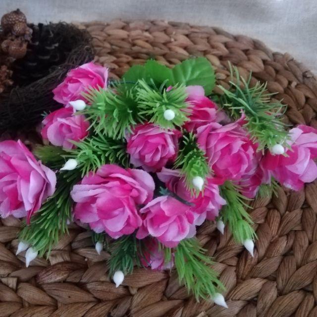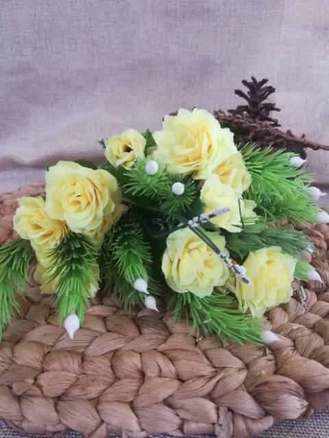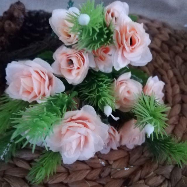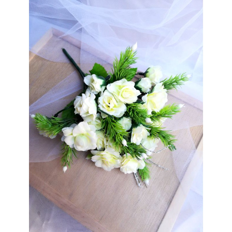 21 KUNTUM MAWAR MINI DAUN JARUM CEMARA ARTIFICIAL HIASAN SESERAHAN MAHAR RUSTIC HOMEDECOR