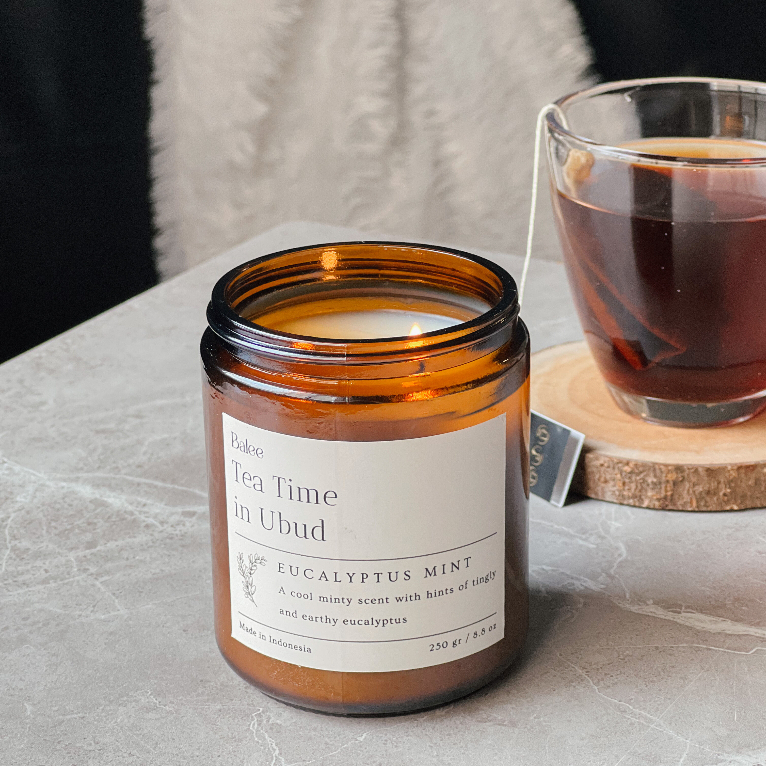 No 3 BEST SELLER BALEE Eucalyptus Mint Tea Time in Ubud Scented Candle / Lilin Aromaterapi / Amber Jar Candle / Premium Soy Candle