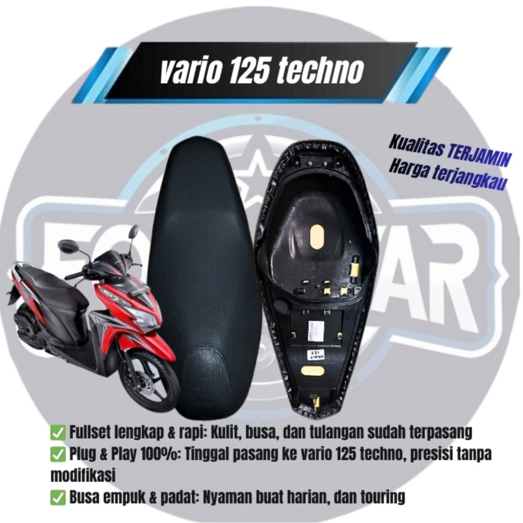 Jok Motor Vario techno 125 dan Vario 125 full set – Kulit Polos + Busa Empuk + Tulangan Baru | Jok Siap Pasang & Anti Selip tu
