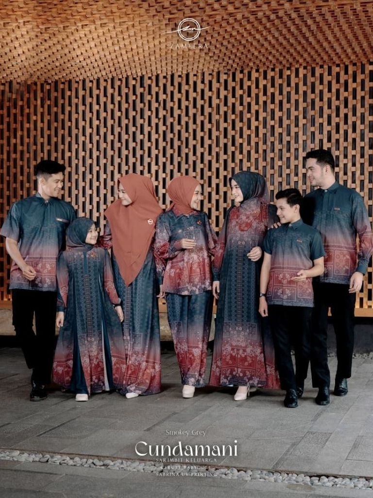 (SIAP KIRIM)Baju Sarimbit Zameera 2026 Cundamani Smokey Grey.