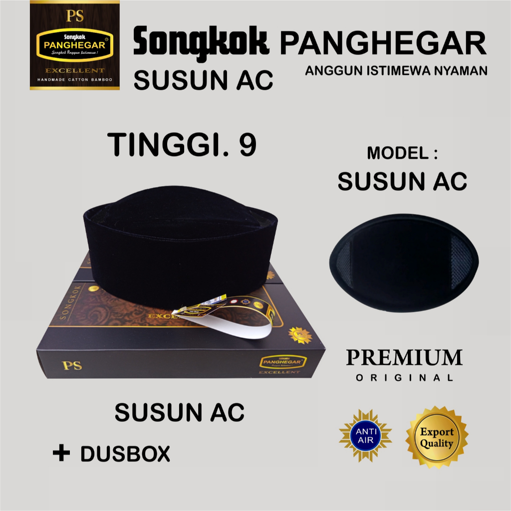 Songkok Susun Dewasa, Peci Susun Anak, Songkok Susun Hitam, Peci Susun Hitam, Kopiah, Songkok, Peci, Songkok Susun Anak, Peci Anak,Songkok Nasional Panghegar AC, Tanpa AC, Susun AC, Berbahan Bludru Tebal import Hitam Kualitas Premium - Songkok Panghegar