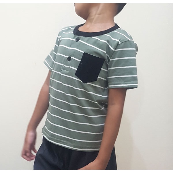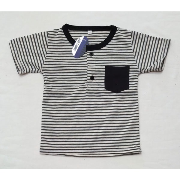 Kaos Anak 2-3 Tahun Salur Polos Baju Anak Kancing & Saku SZ-2