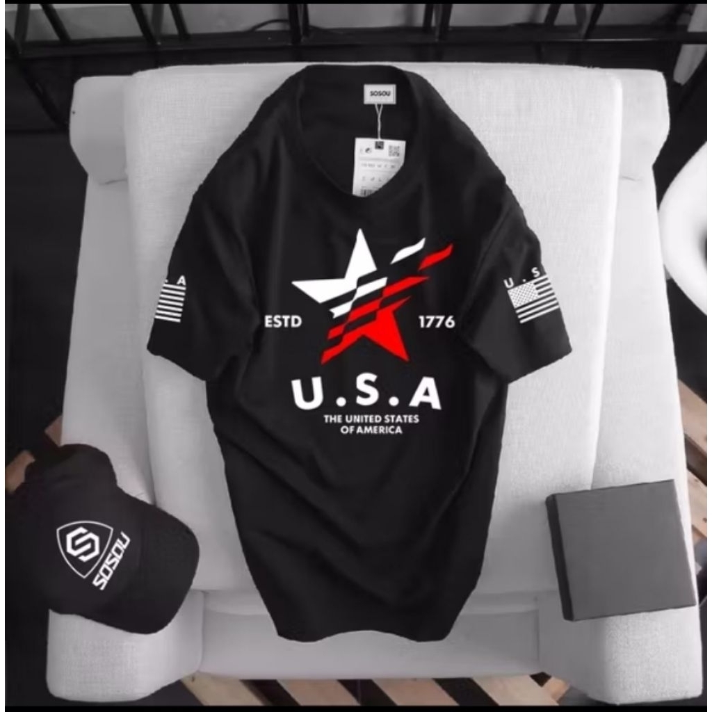 Kaos Distro Pria Wanita TSHIRT USA 1776 Bahan Cotton 24s Kaos Premium Lengan Pendek