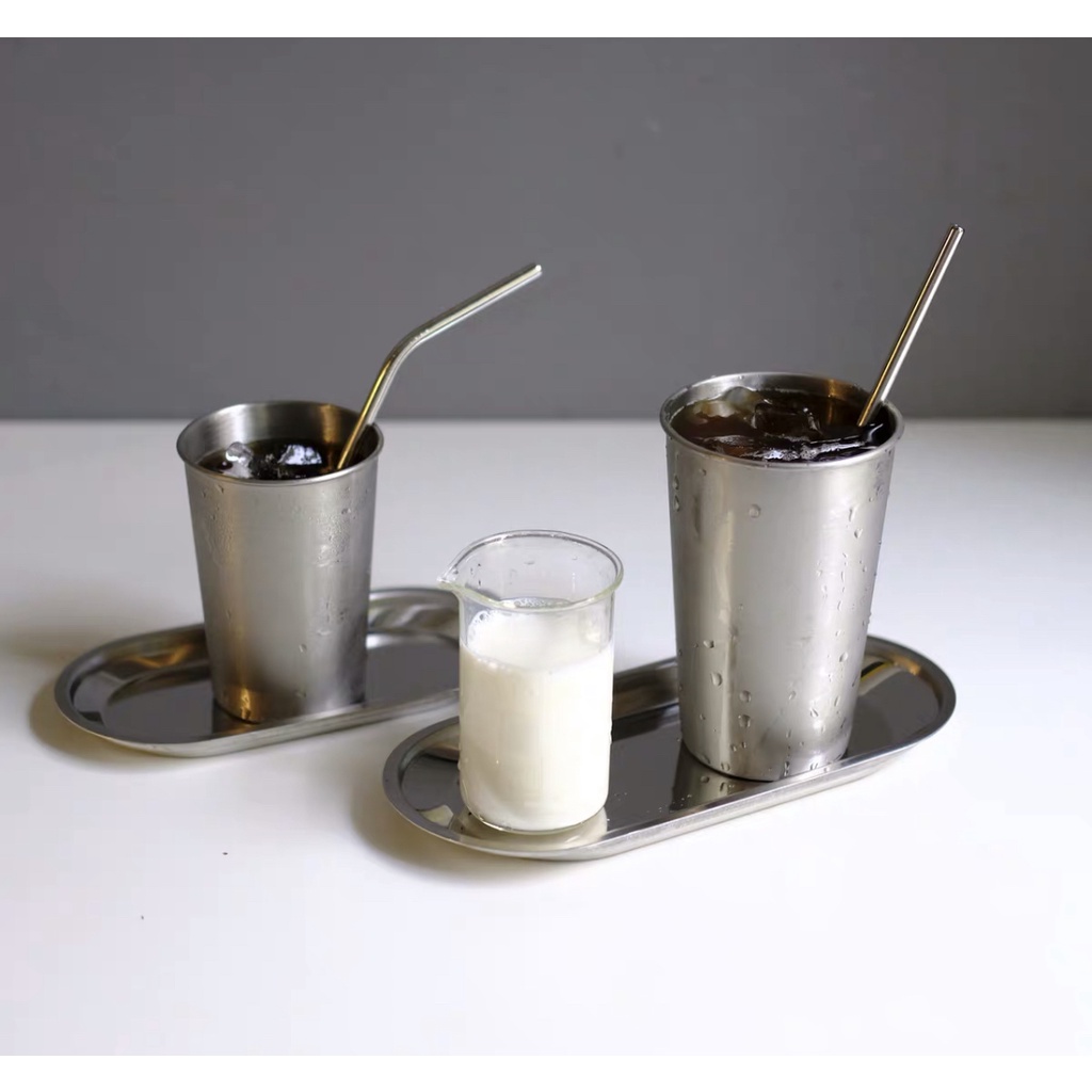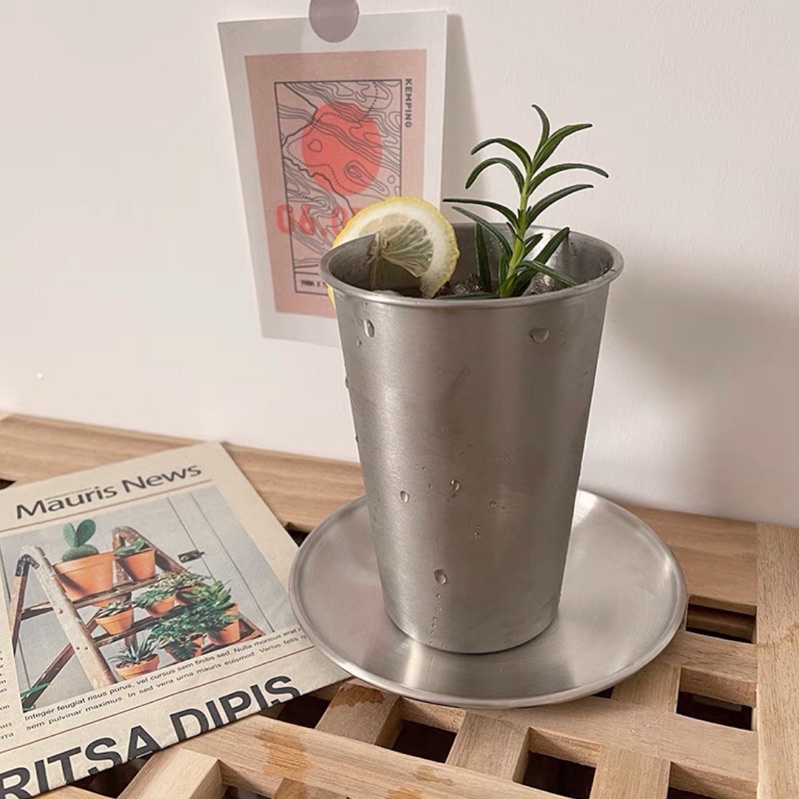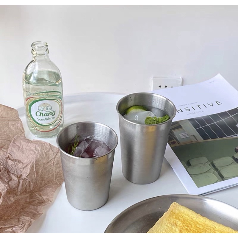 Stainless Steel Korean Cafe Ice Coffee Glass 300 & 500ml | Gelas BPA FREE Matcha Kopi Dingin | Gelas Stainless Steel 304