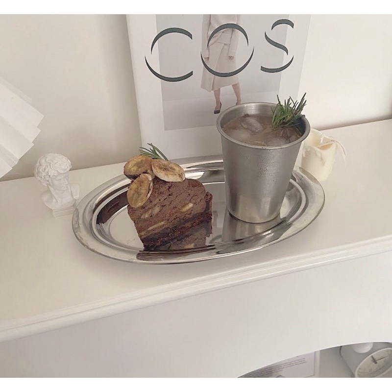 Vintage Oval Stainless Steel Plate Tray | Nampan Stainless Steel Estetik Homecafe Homedecor Cantik Murah Simpel